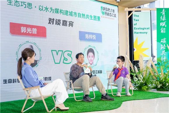 活动现场,第四届上海市青少年生态文明素养交流活动正式启动,三年以来,该活动为青少年搭建了学术创新与实践挑战的展示平台,吸引了全市各级各类学校的学生聚焦身边的环保议题,围绕“双碳”目标产出创新成果。活动主办方遴选了5个年度优秀项目,邀请5名专家学者与5个项目负责学生进行主题交流,以创新视角探讨生态环保的无限可能。