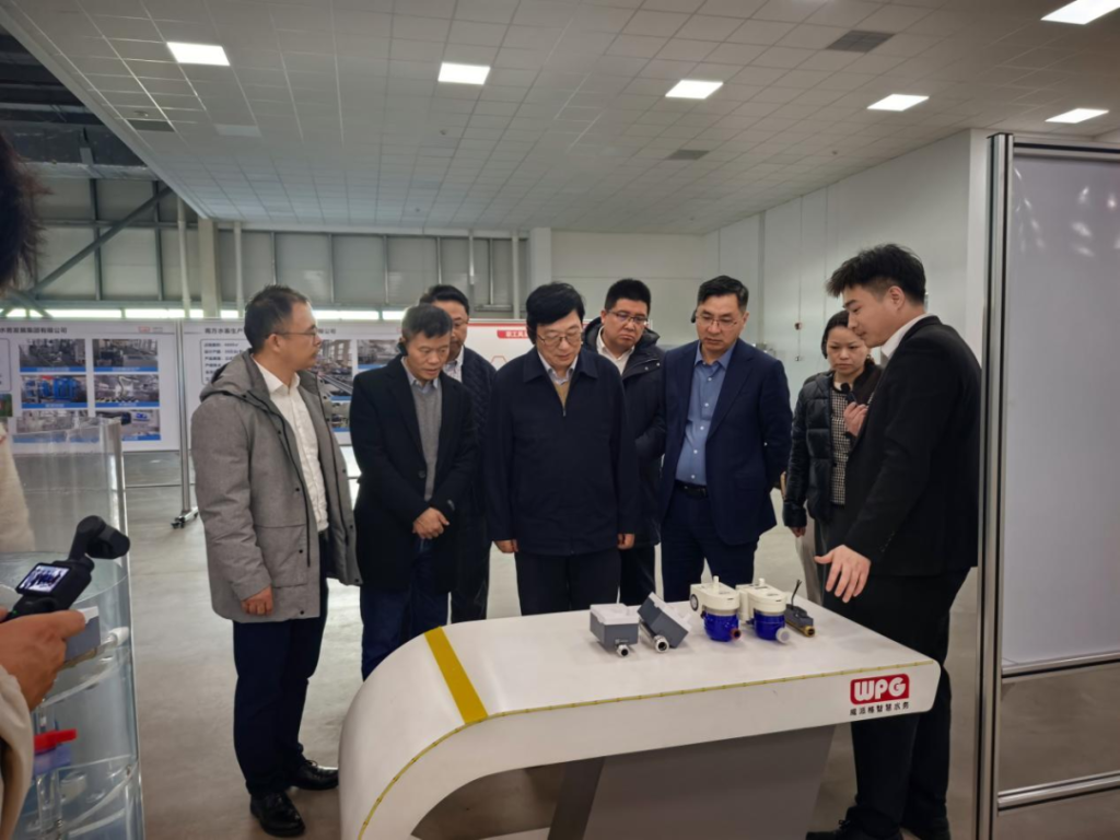 随后,协会调研组又来到上海威派格智慧水务股份有限公司参观了其数字化生产车间、智慧水务及党建文化展示中心,深入了解了公司技术创新与党建融合的丰硕成果。上海威派格智慧水务股份有限公司向大家展示了国内首条小口径超声水表全自动化产线,具备水务知识问答、设备运维指导、数据可视化解读等功能的数字人服务系统,与同济大学共同研发的“机器人探漏”专项课题中的四足机器狗等项目。