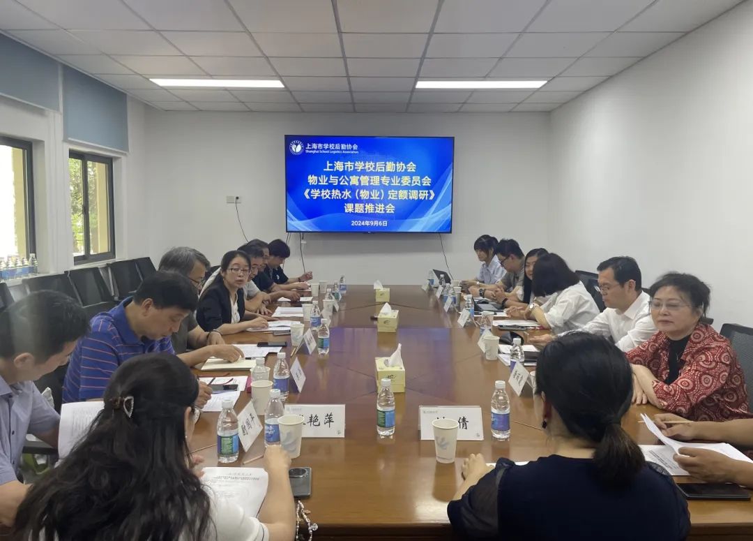 进节约集约发展的思想,有效推动专委会课题研究工作高质量发展,9月6日,上海市学校后勤协会物业与公寓管理专业委员会(以下简称“物专会”)《学校热水(物业)定额调研》课题推进会在上海财经大学顺利召开。市教委学校后勤保卫处副处长毛岚,市教委学校后勤保卫处四级调研员施丽君,市教委教育技术装备中心副主任赵晓伟,市协会党支部书记、副秘书长唐丽霞出席会议,高校后勤服务领域相关专家,学校热水(物业)定额调研课题组成员,专委会主任、秘书长单位高校,相关领域企业代表等参加会议。会议由物专会主任朱莹主持。