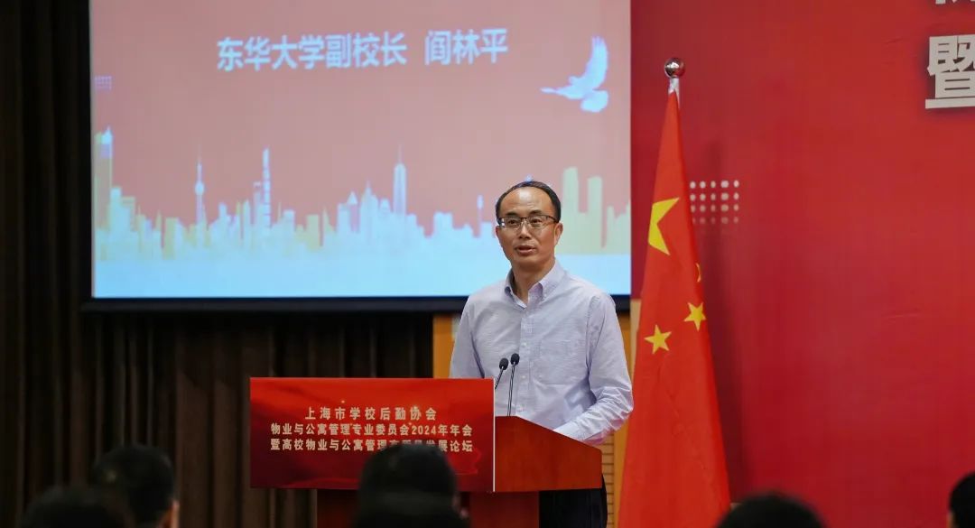 阎林平副校长代表学校对参加大会的各单位同志表示欢迎,并预祝大会顺利召开。他表示,高校物业与学生公寓管理是校园的基础民生,是高质量教育体系建设的重要组成部分。本次论坛不仅为上海高校后勤工作者搭建互动桥梁,促进经验交流,也为京沪两地后勤工作协同合作搭建了平台,他愿与大家同频共振,共同迎接新挑战,为推动高校物业与学生公寓管理的高质量发展贡献力量。