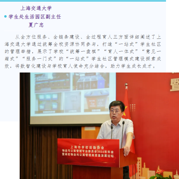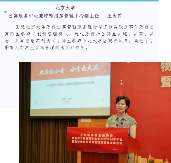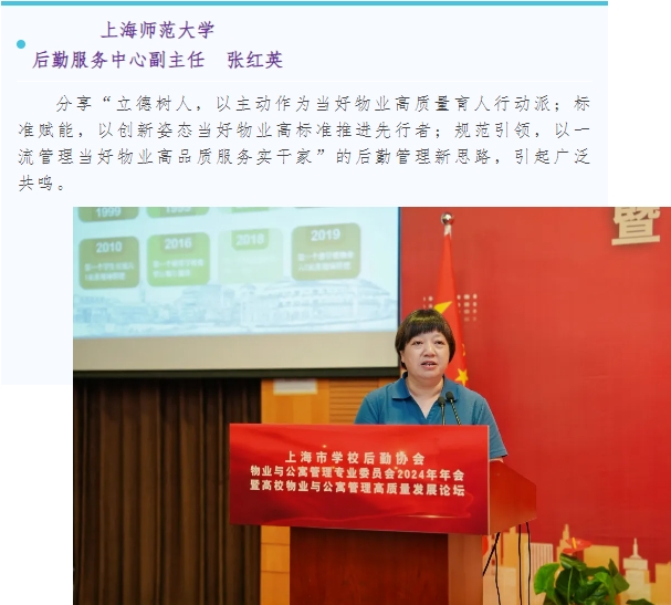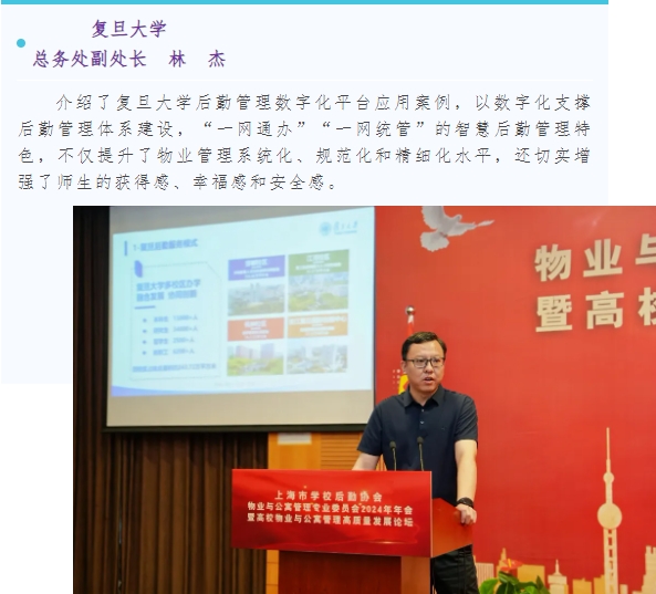 本次论坛邀请了北京大学、复旦大学、上海交通大学、华东师范大学、上海师范大学、上海对外经贸大学以及上海现代高校智慧后勤研究院等7位专家就物业与公寓管理做经验分享交流。