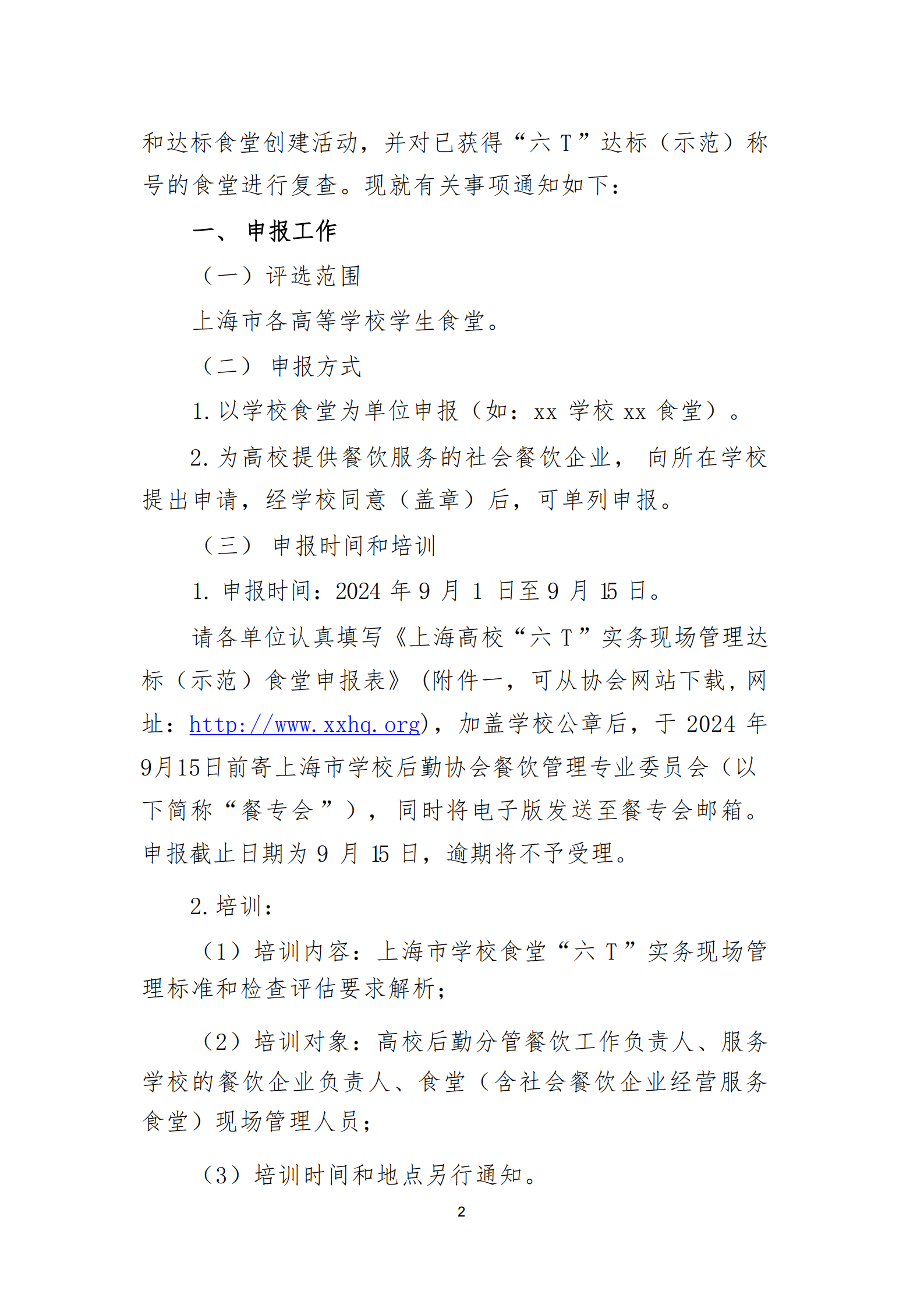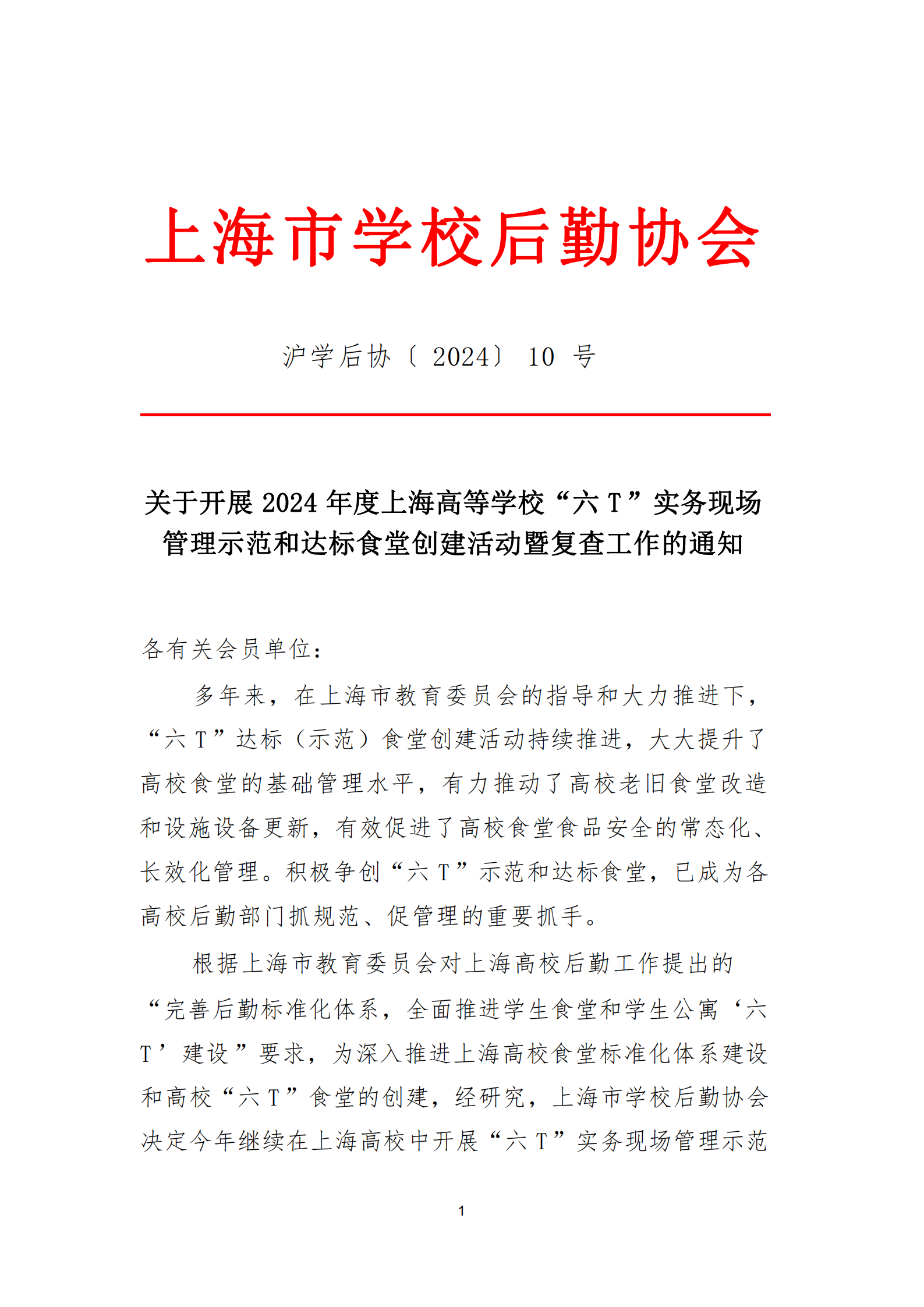 关于开展2024年度上海高等学校“六T”实务现场管理示范和达标食堂创建活动暨复查工作的通知