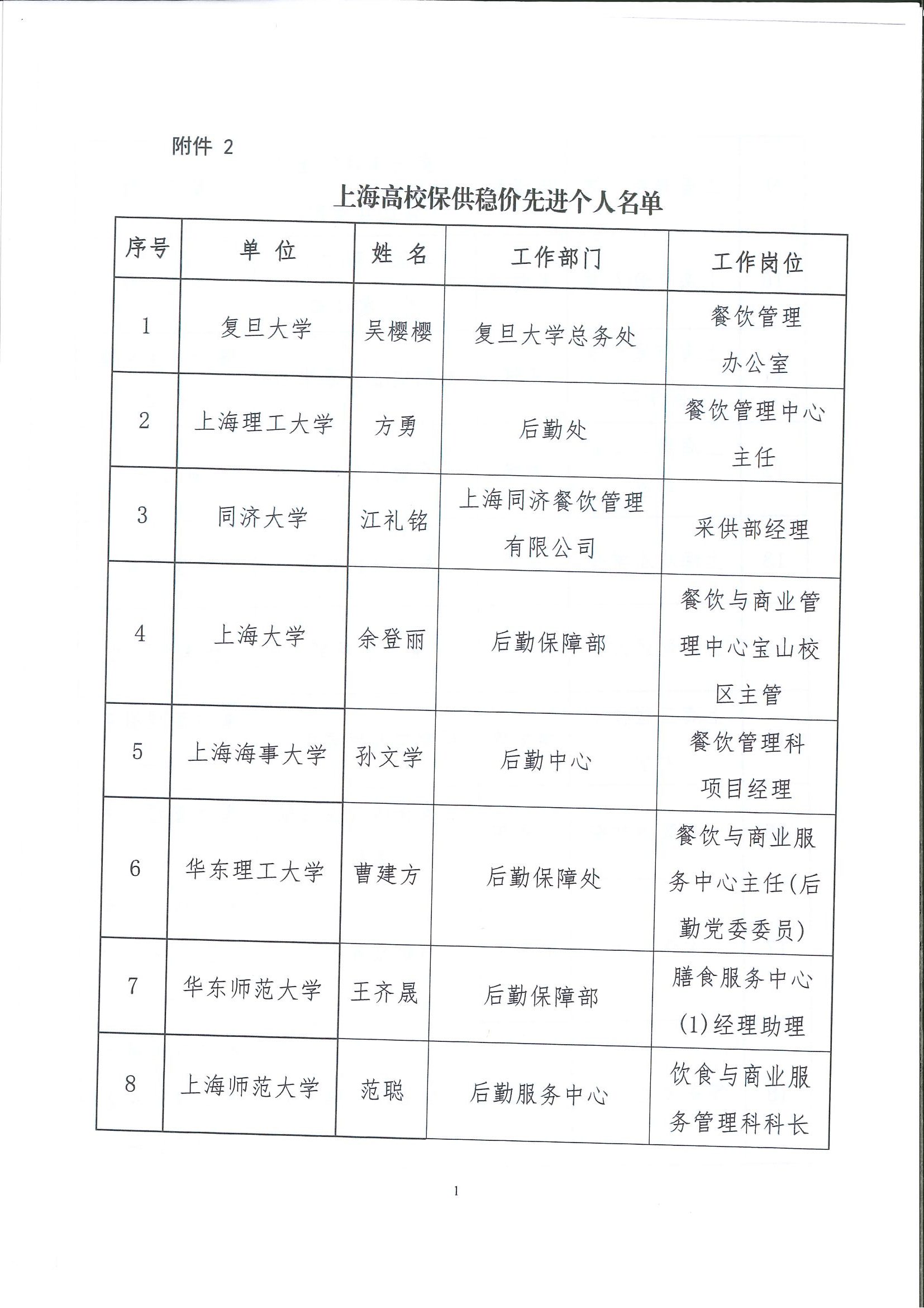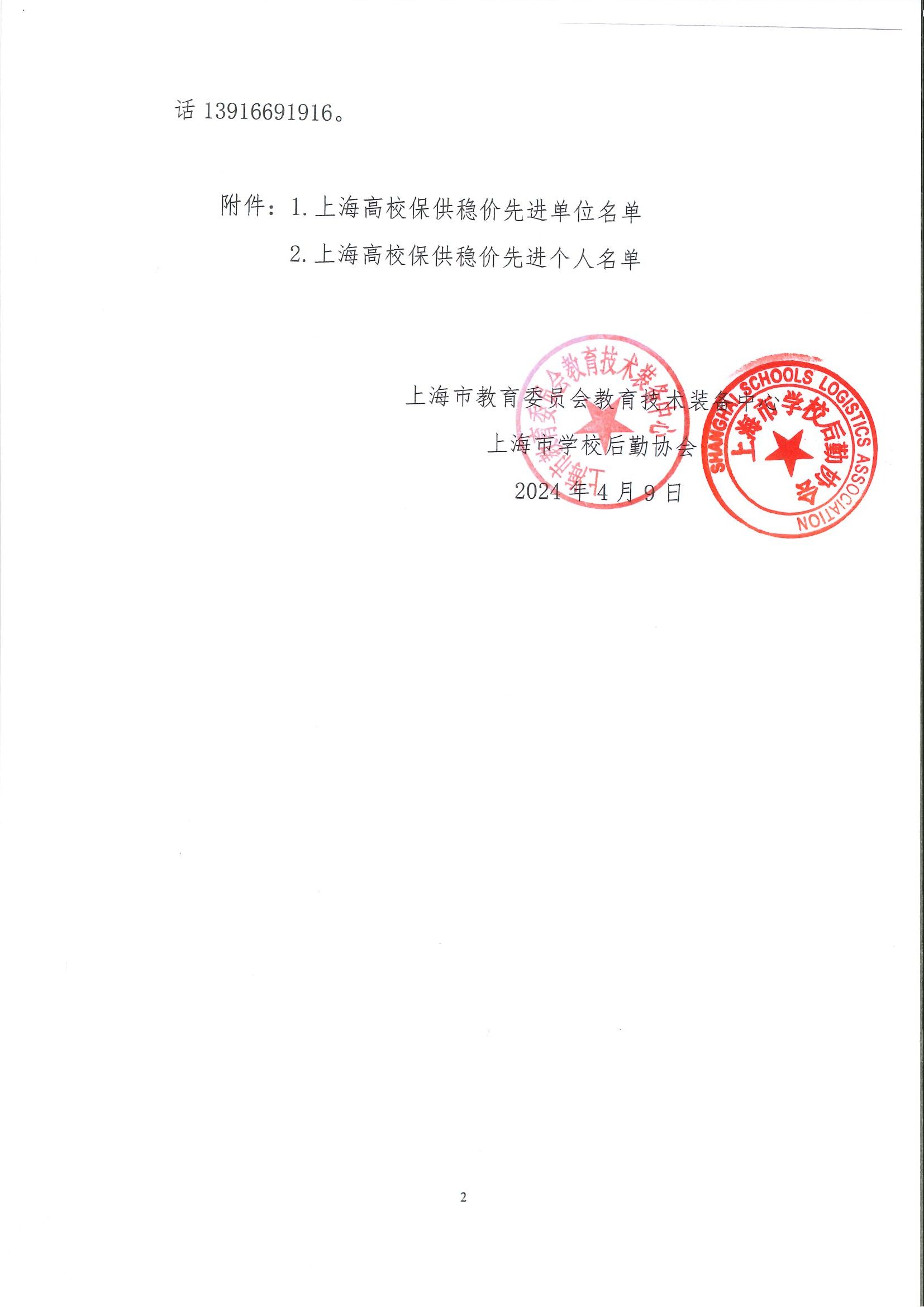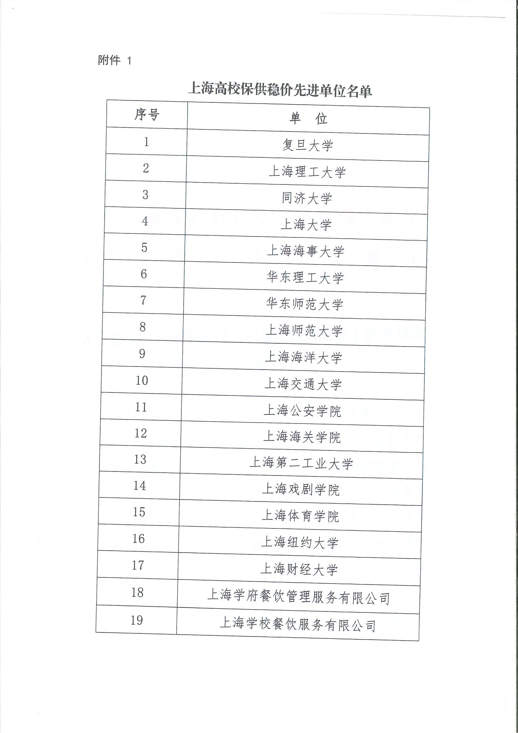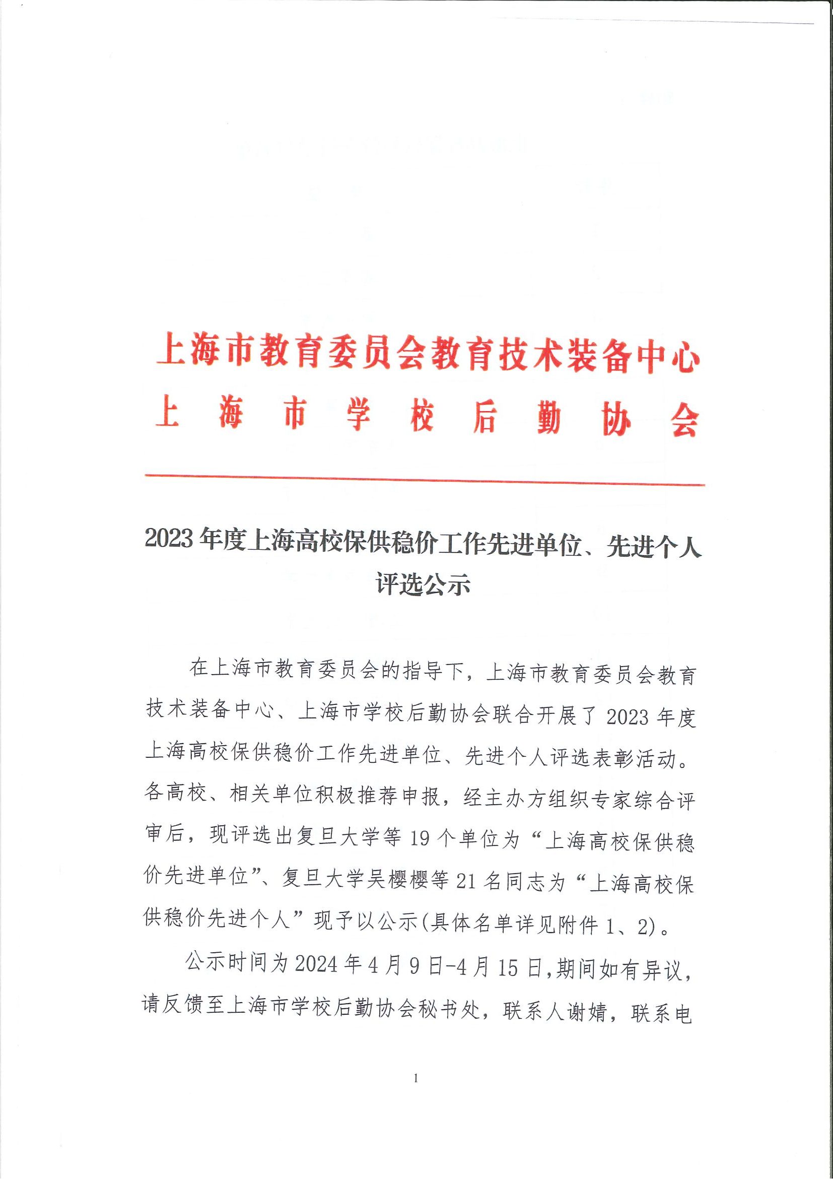 2023年度上海高校保供稳价工作先进单位、先进个人名单公示