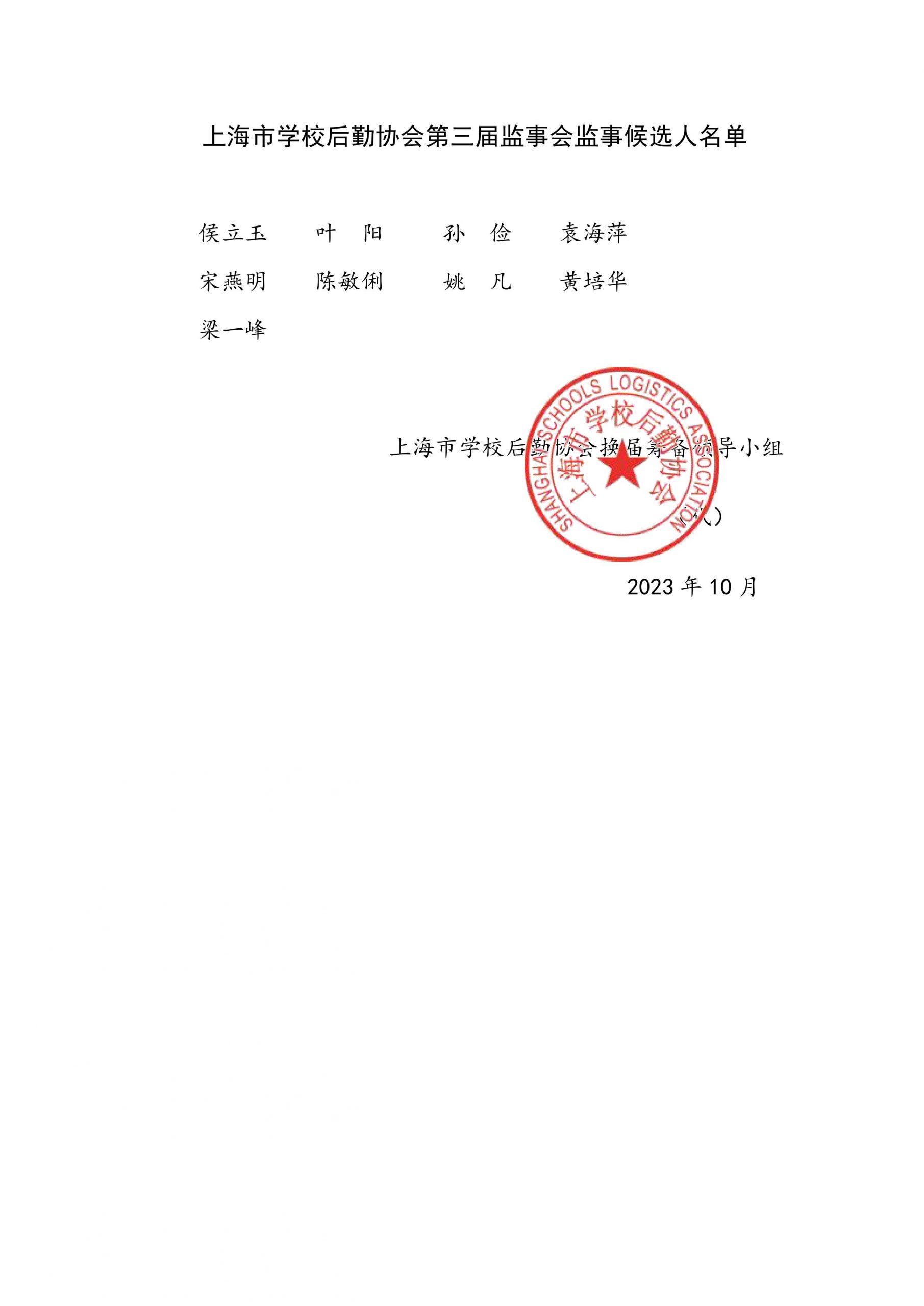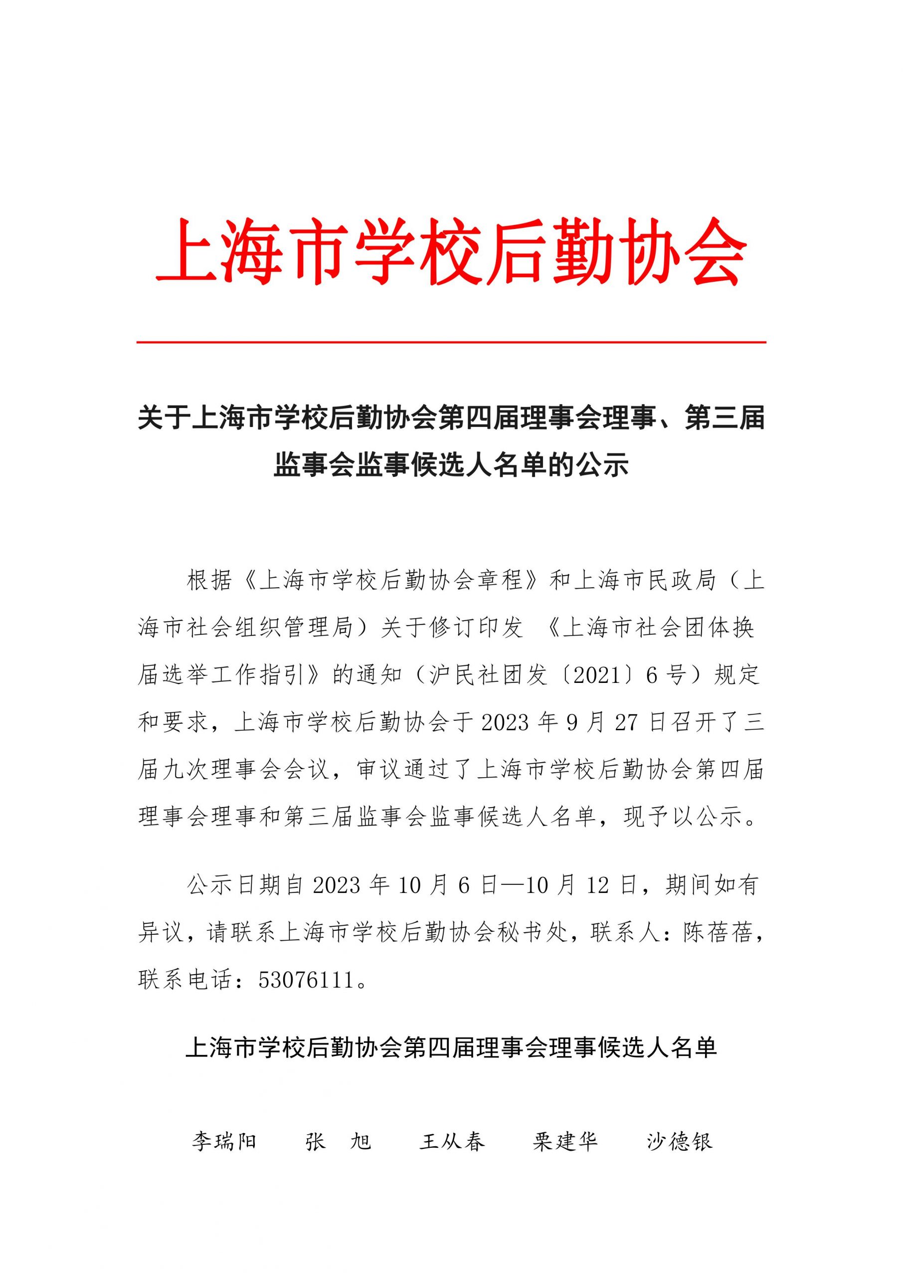 关于上海市学校后勤协会第四届理事会理事、第三届监事会监事候选人名单的公示