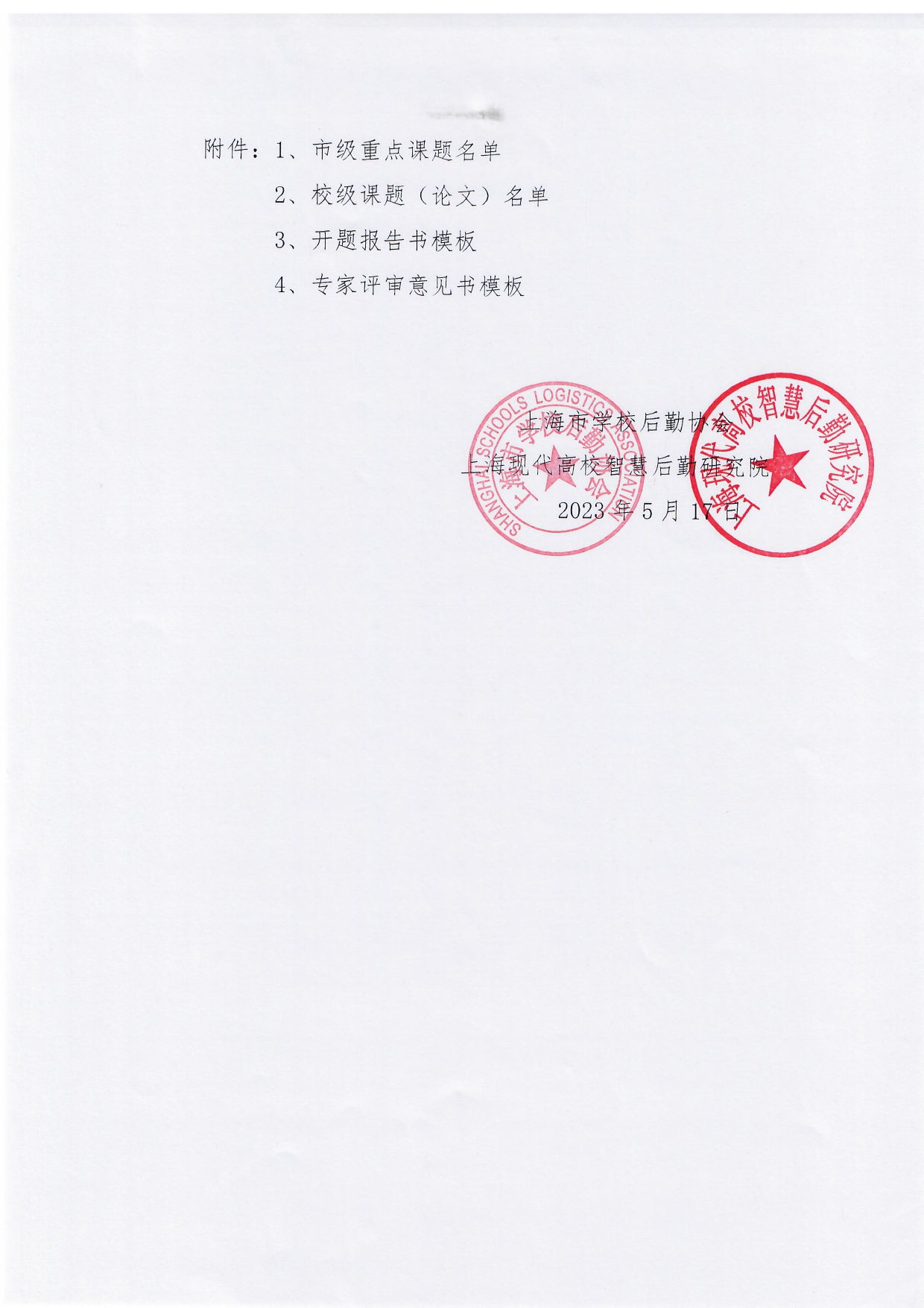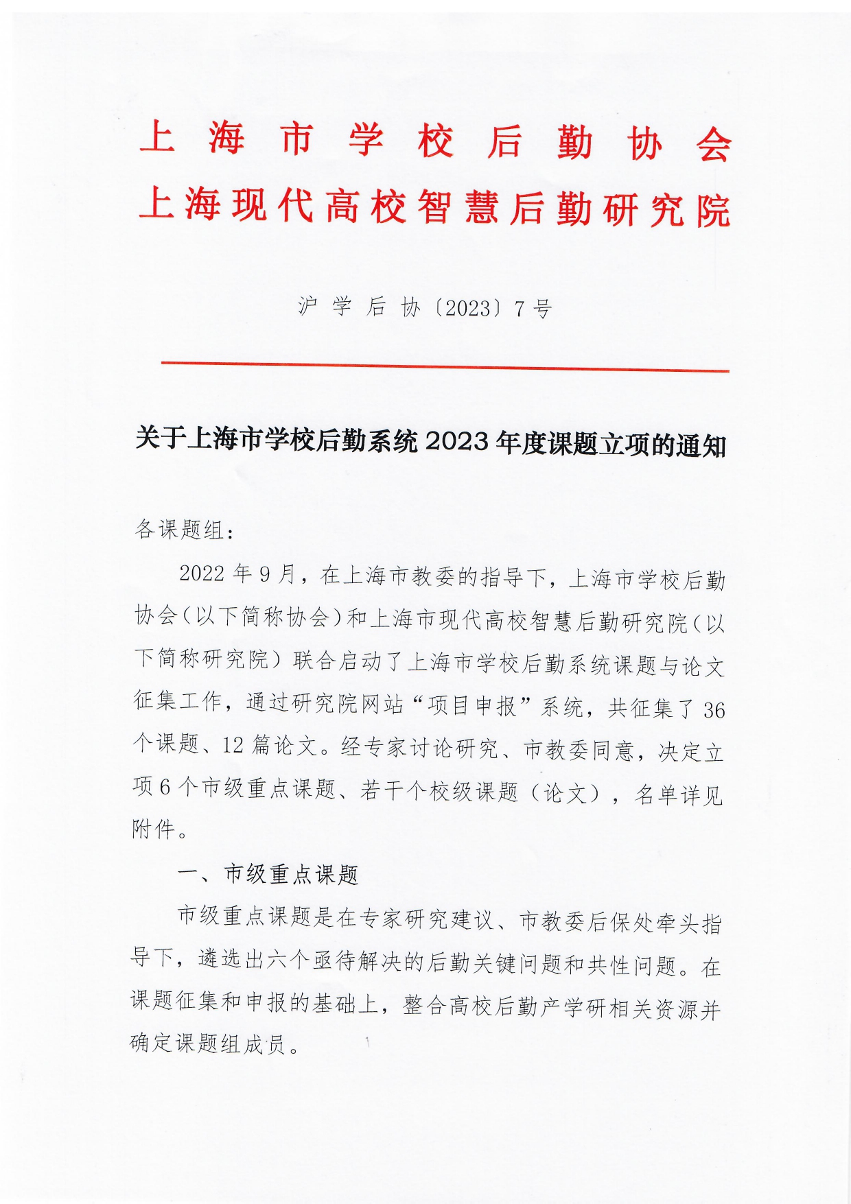 关于上海市学校后勤系统2023年度课题立项的通知