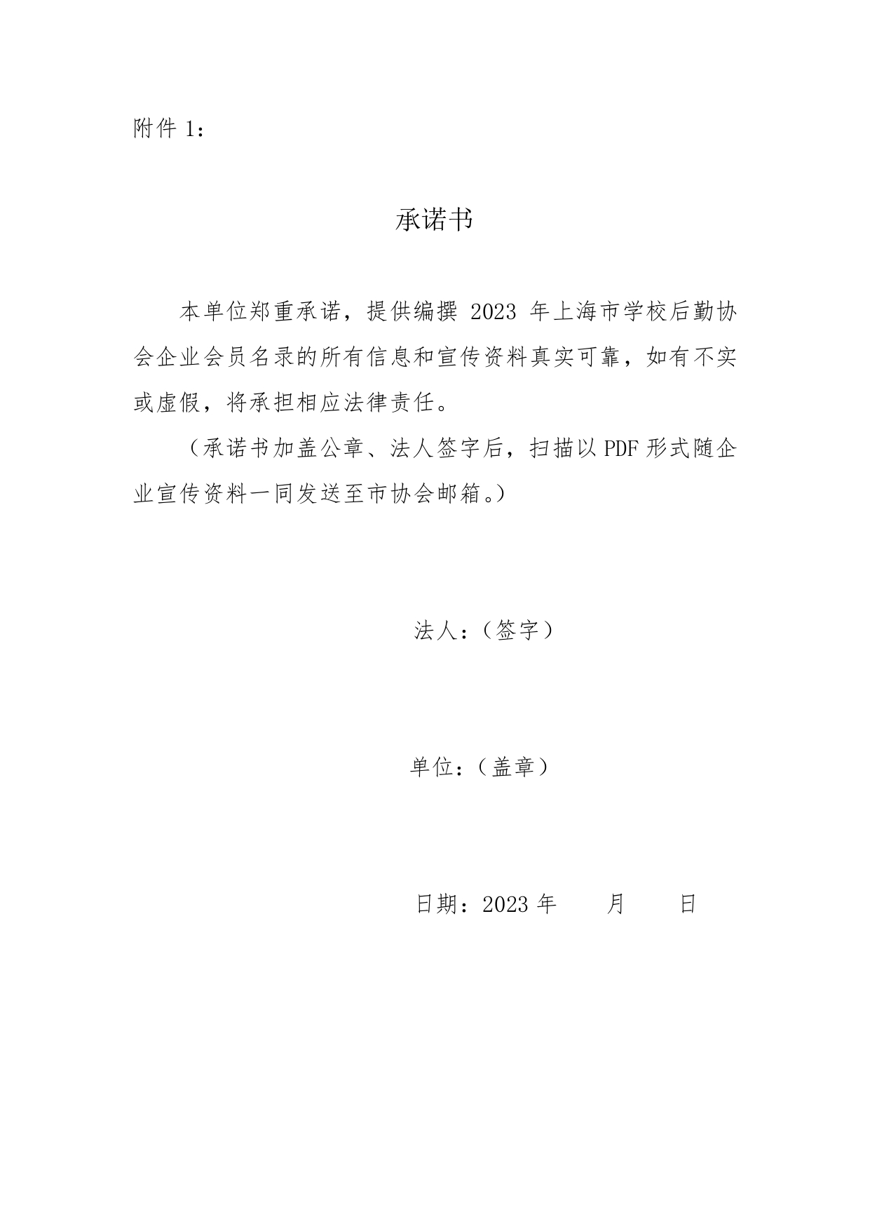 附件1 承诺书