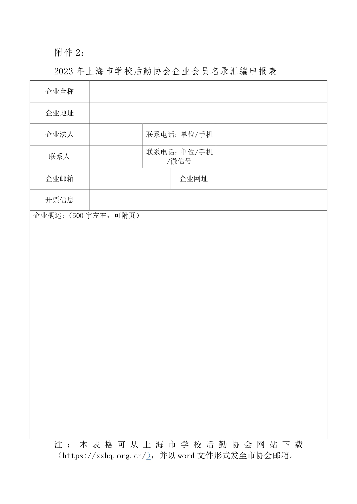 附件2:2023年上海市学校后勤协会企业会员名录汇编申报表