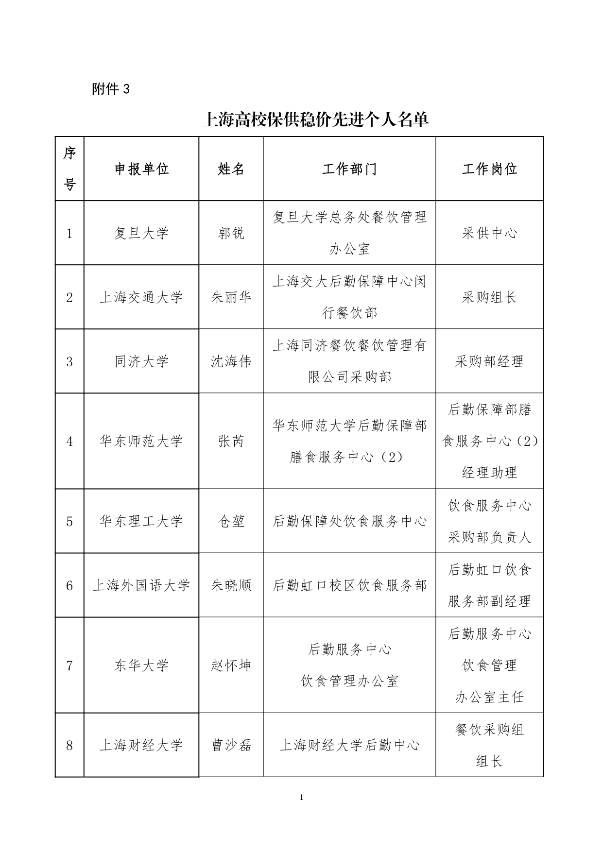 2022年度上海高校保供稳价和消费帮扶工作先进单位、先进个人名单公示