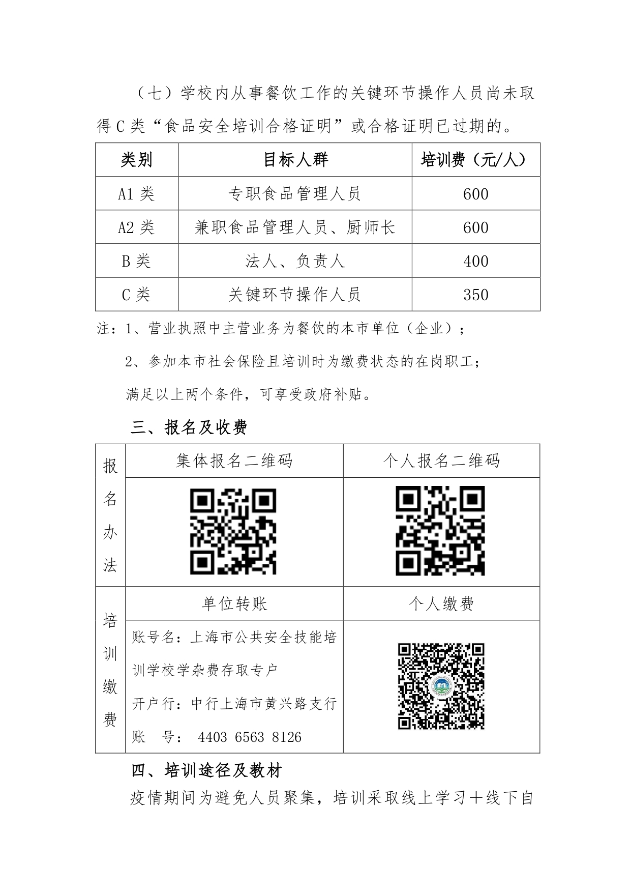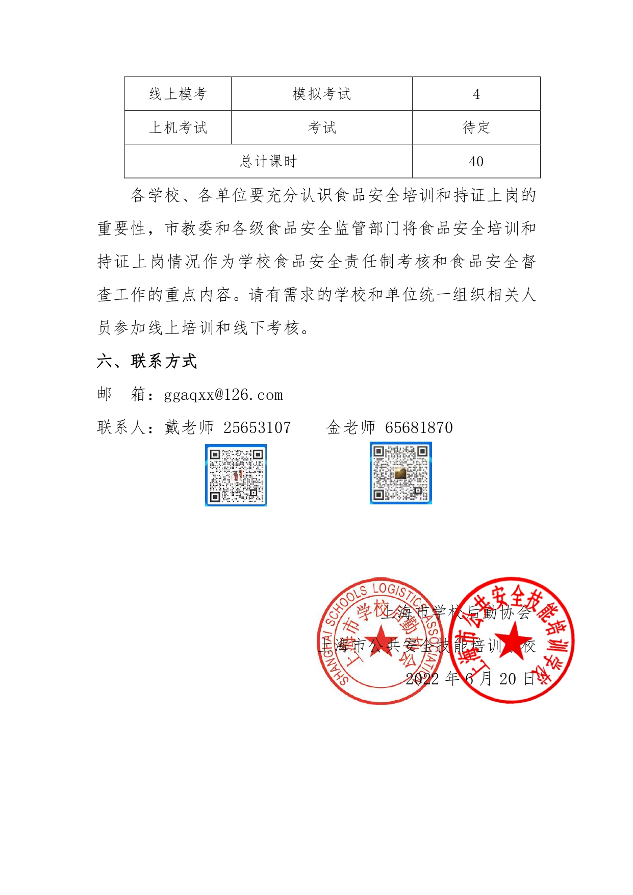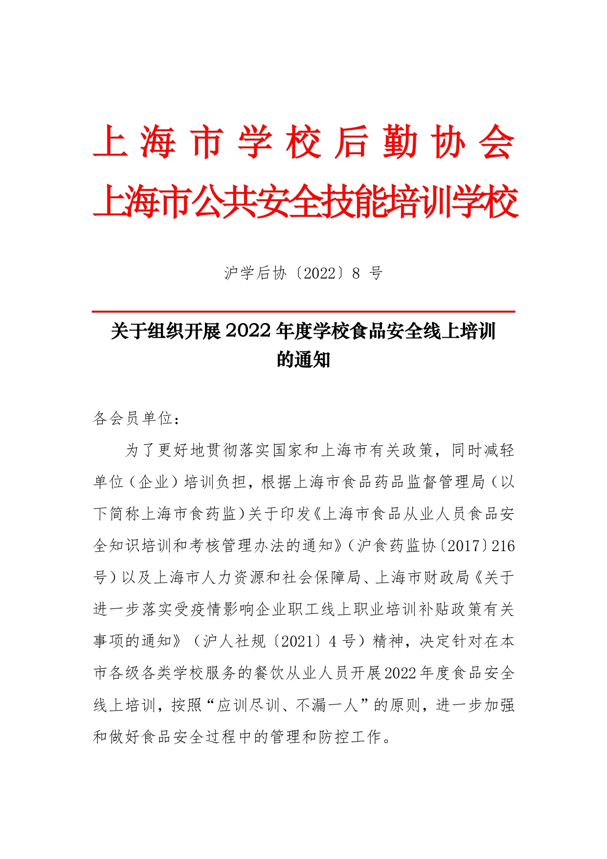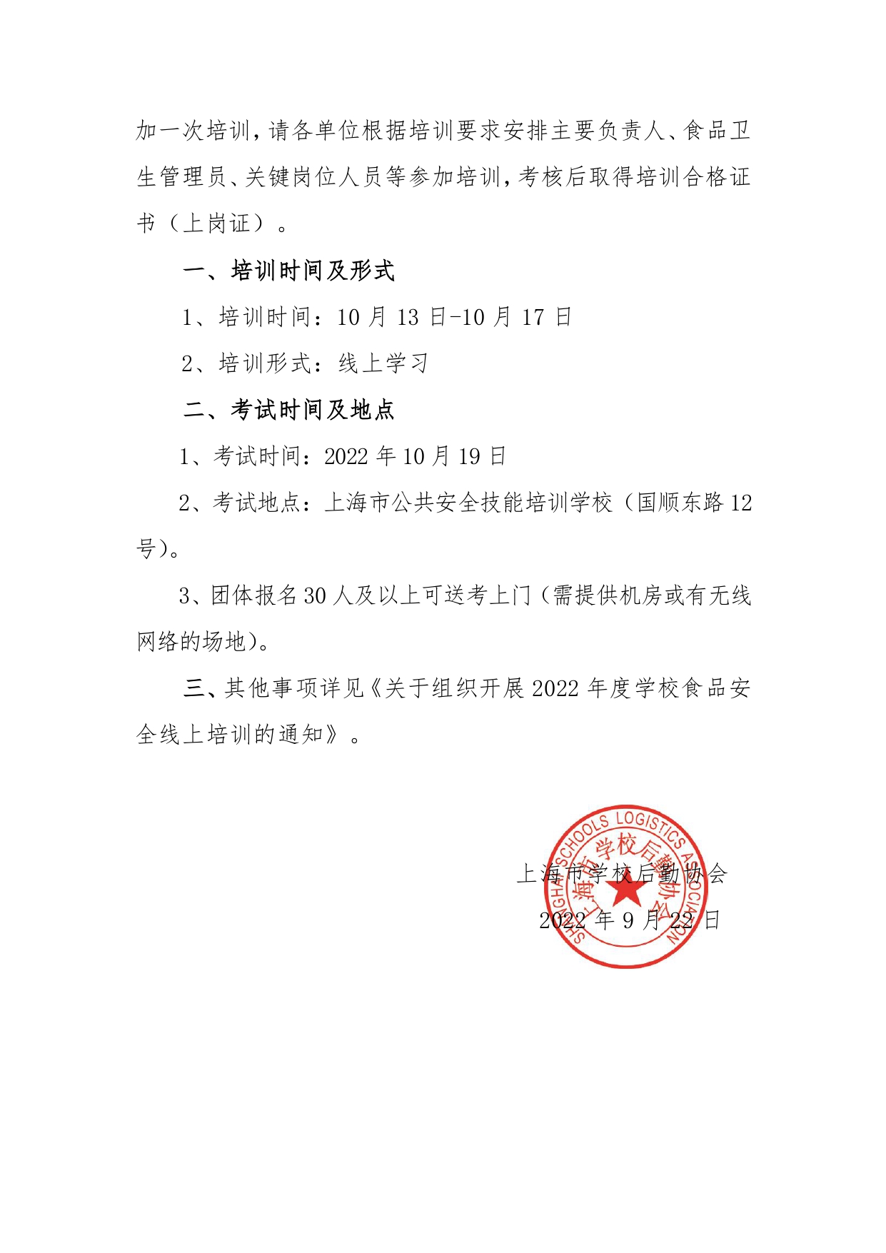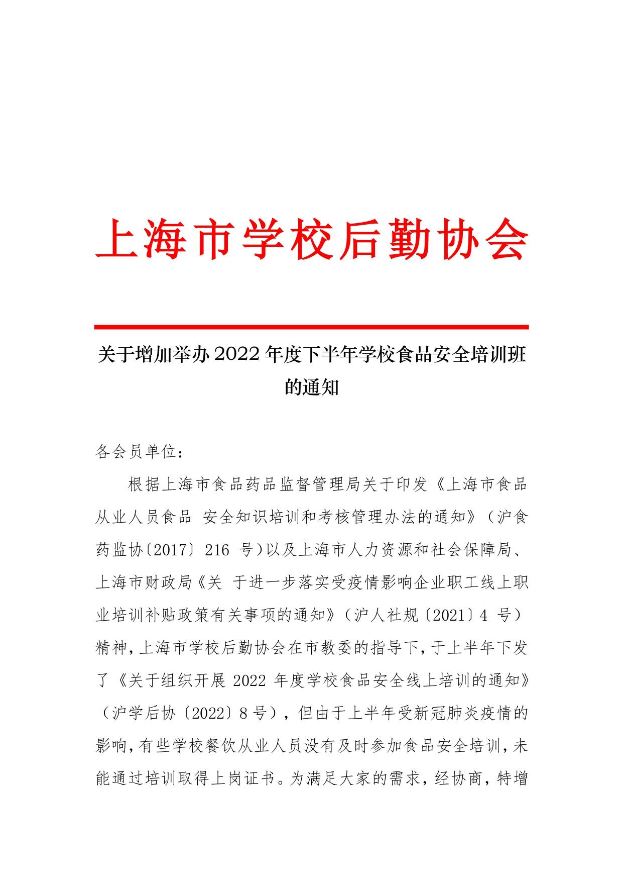 关于增加举办2022年度下半年上海市学校食品安全培训班的通知