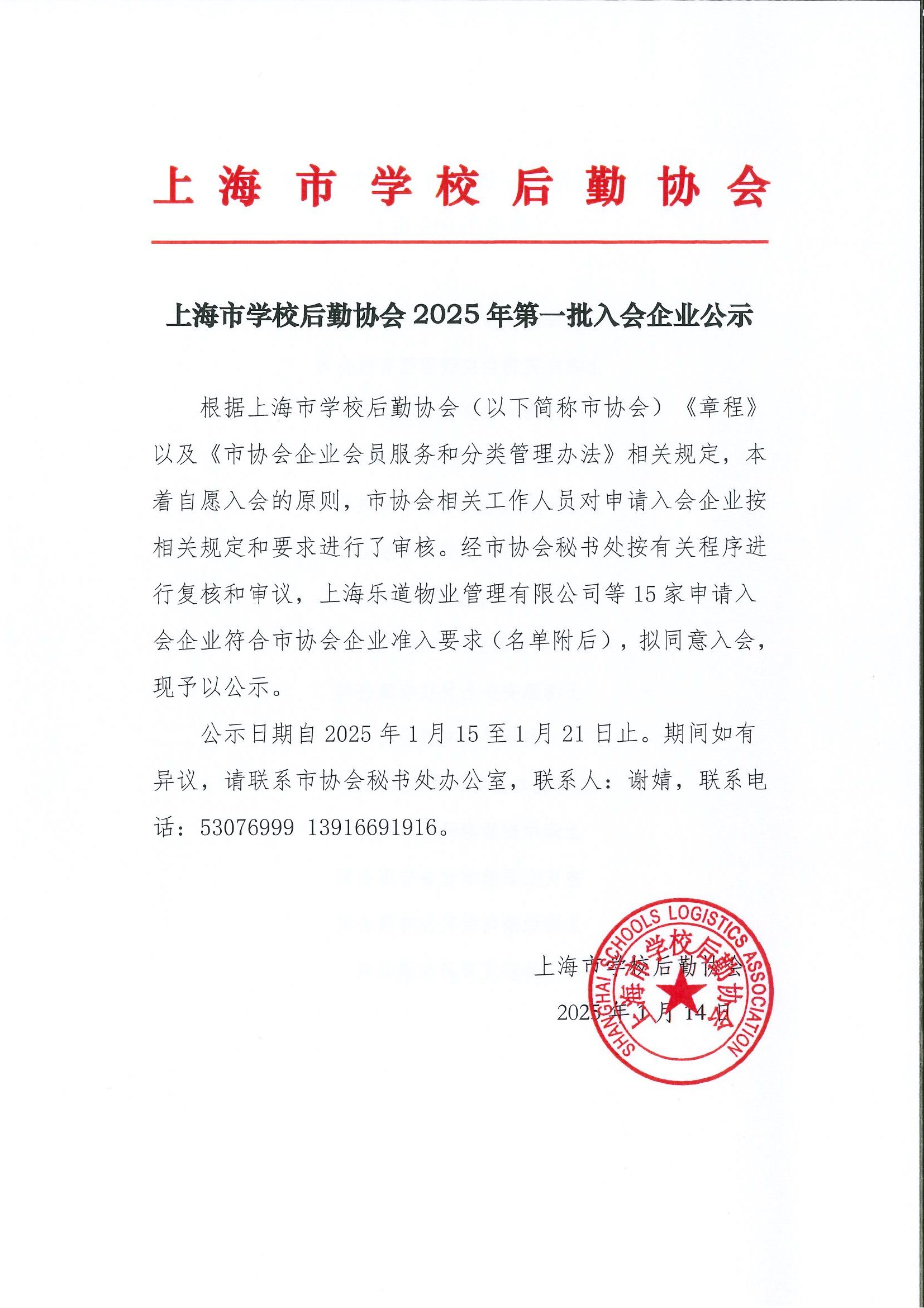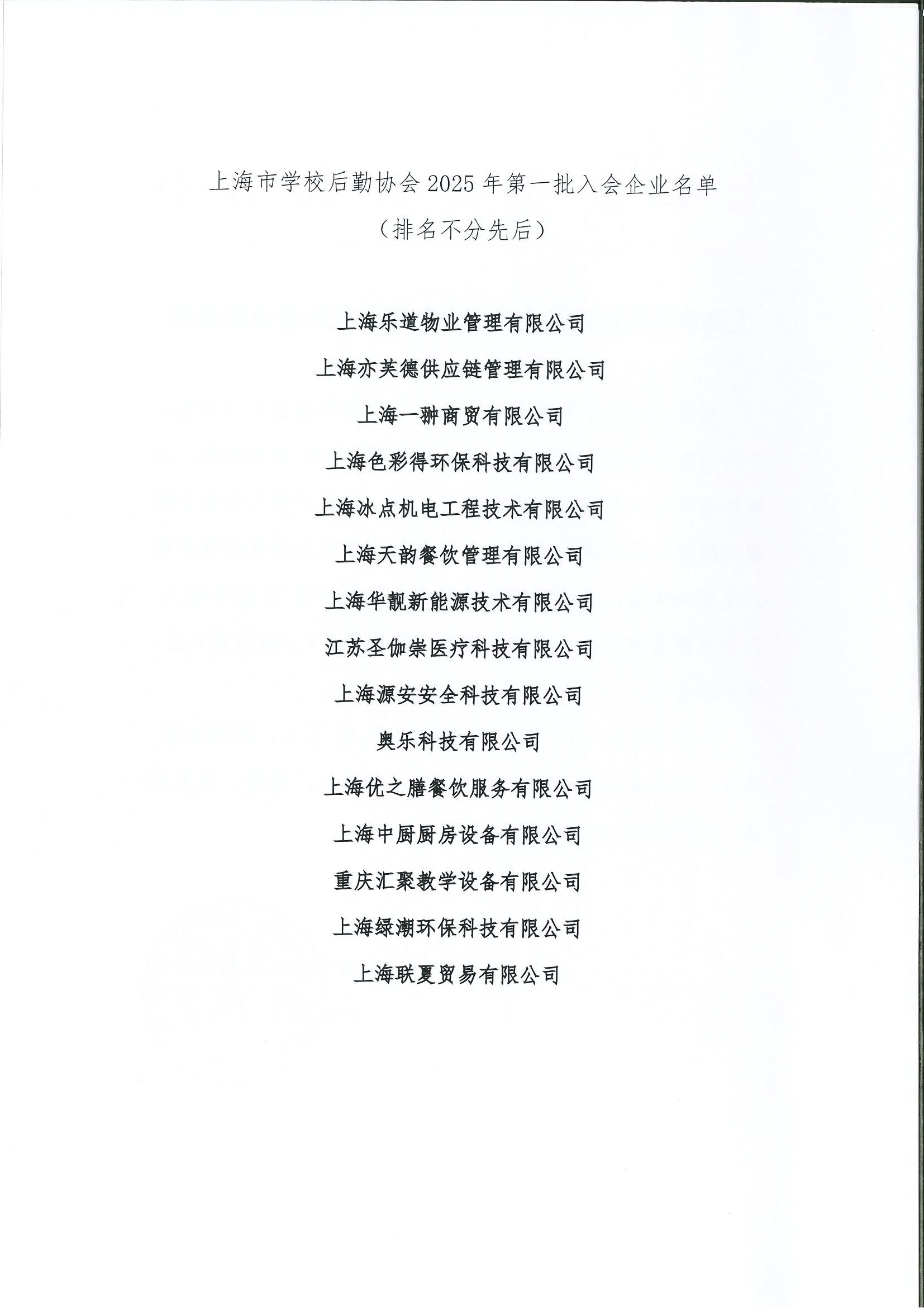上海市学校后勤协会2025年第一批入会企业公示