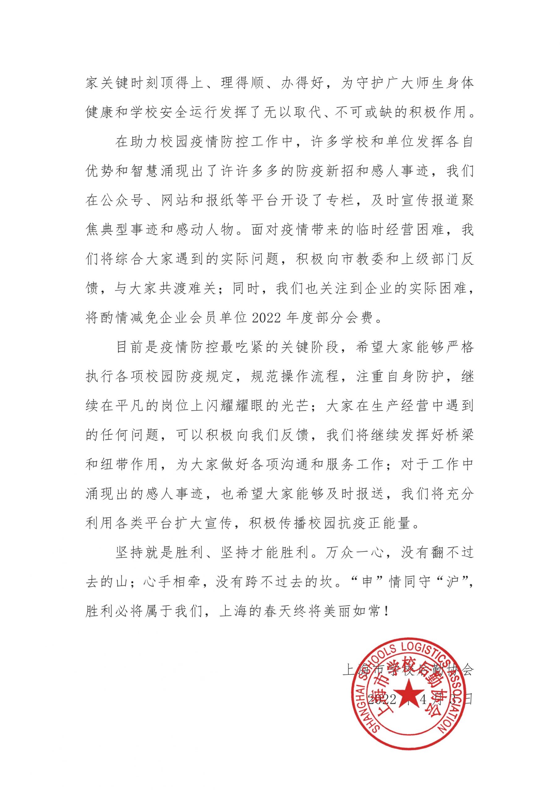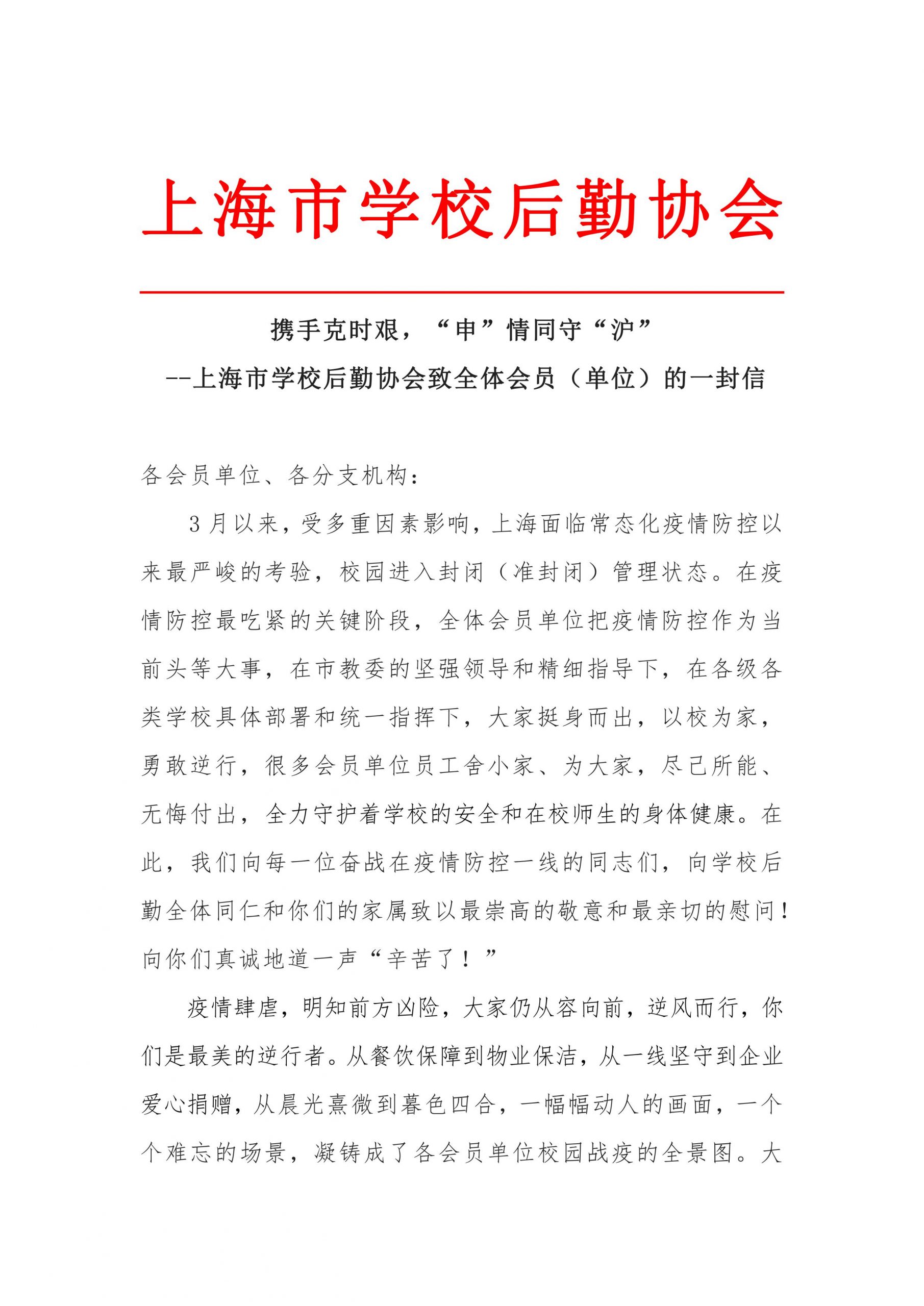 携手克时艰,“申”情同守“沪” --上海市学校后勤协会致全体会员(单位)的一封信