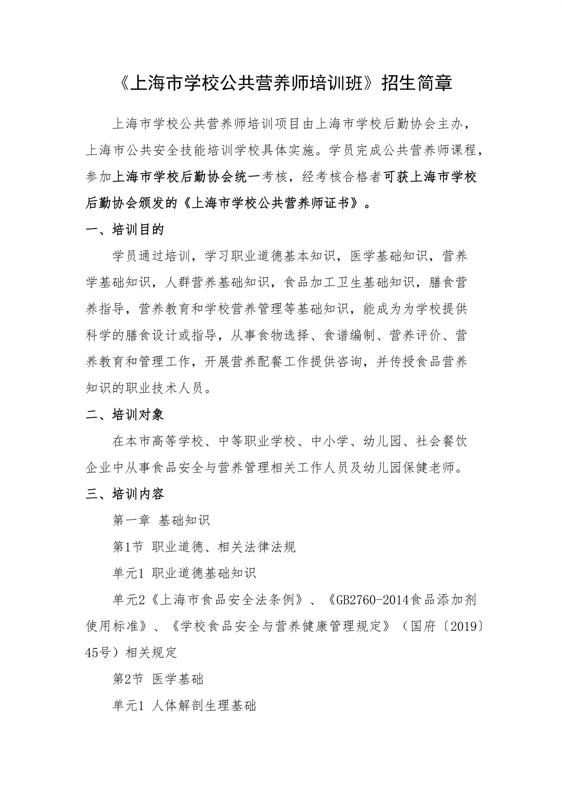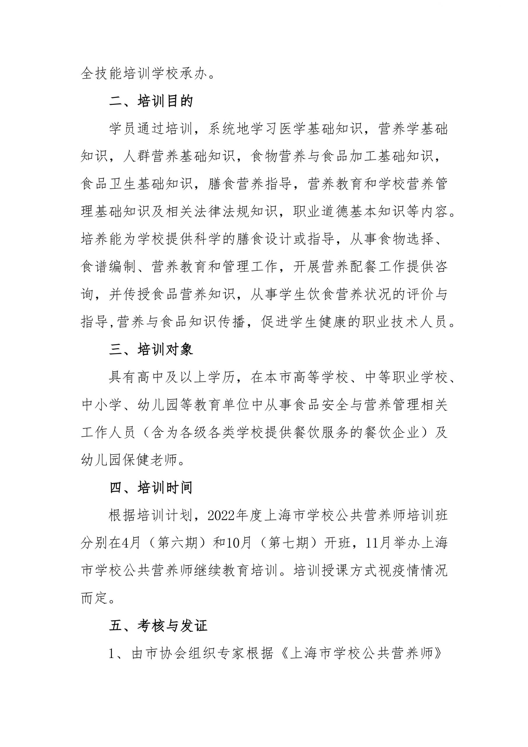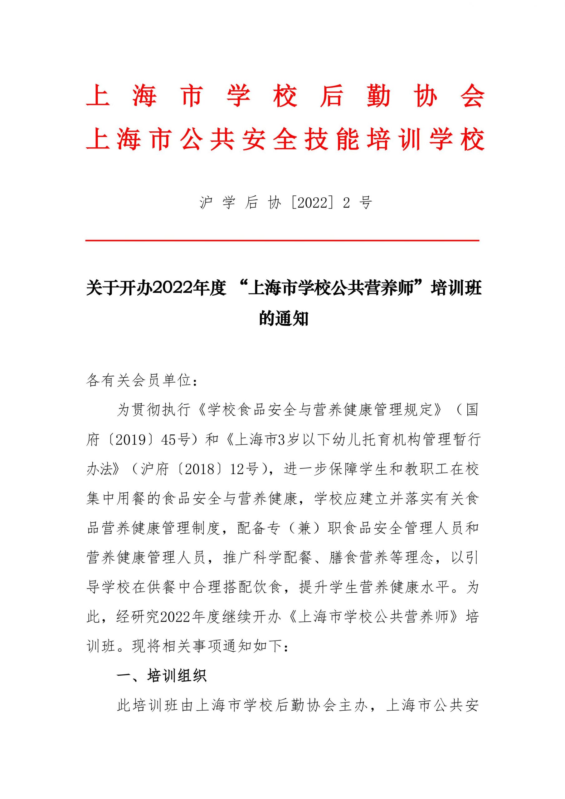 关于开办2022年度 “上海市学校公共营养师”培训班的通知