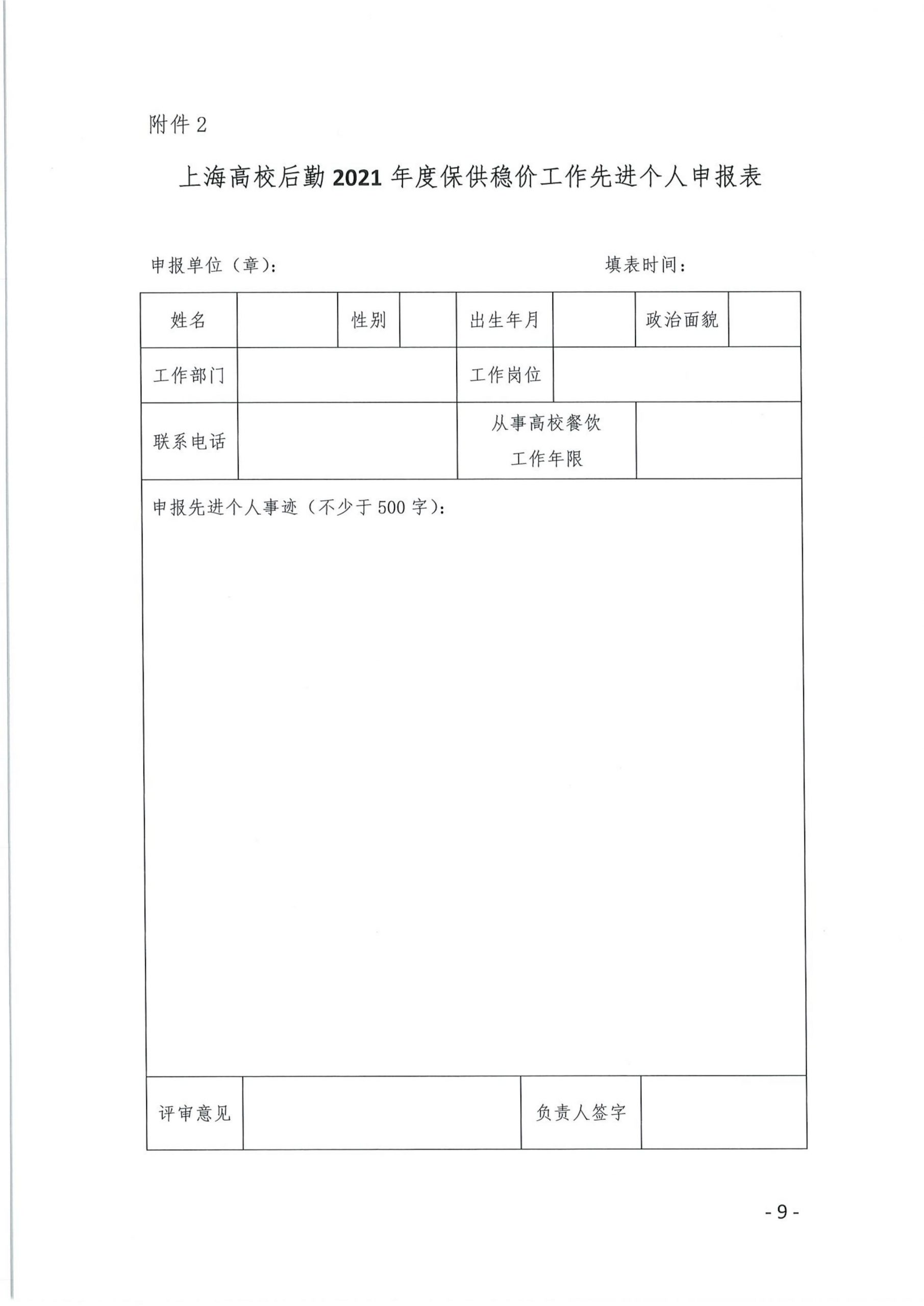 附件2 上海高校后勤2021年度保供稳价工作先进个人申报表