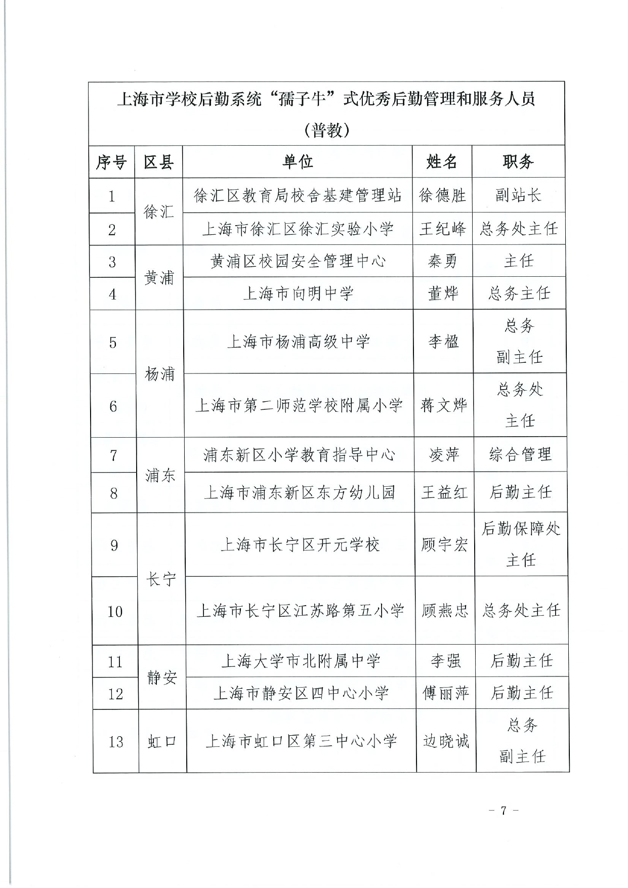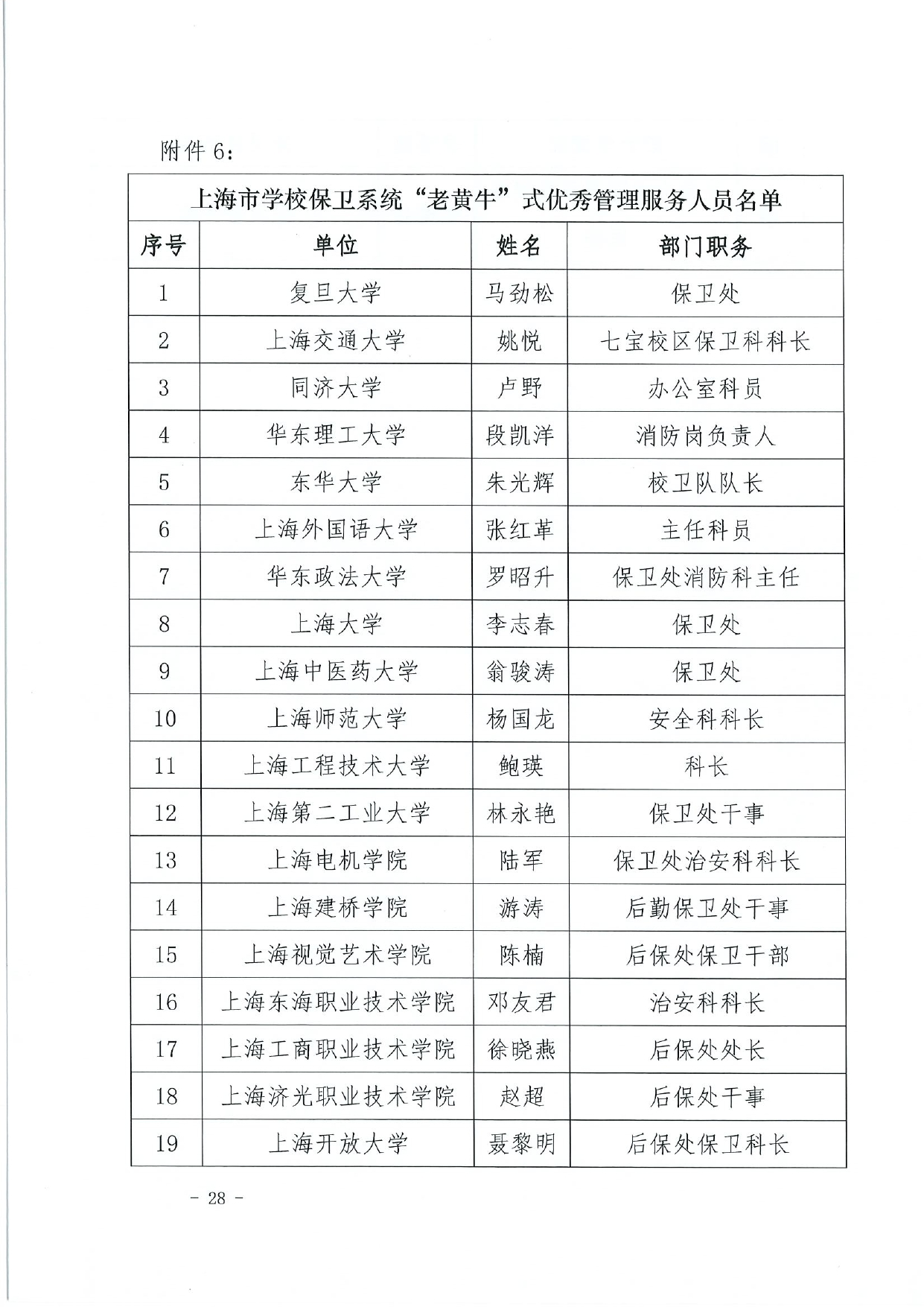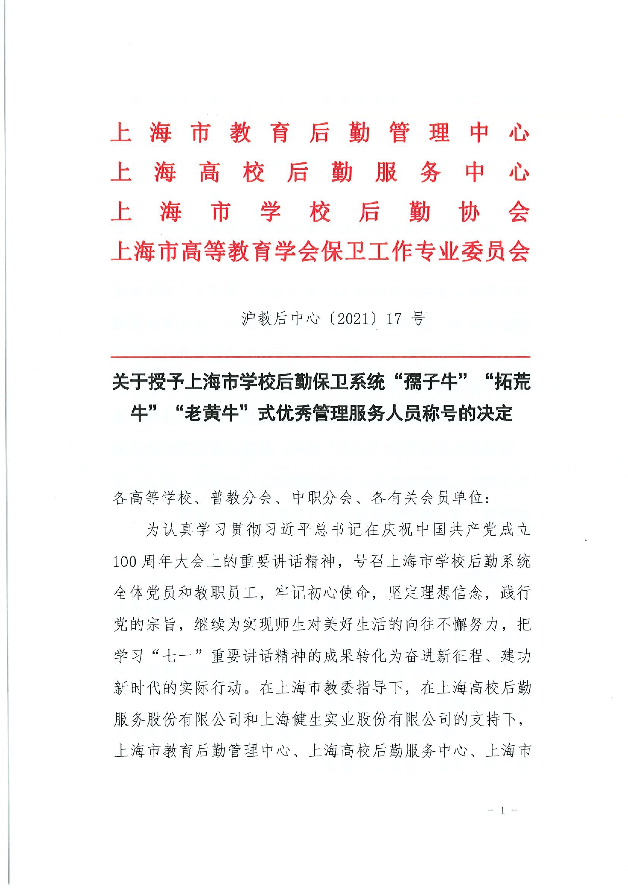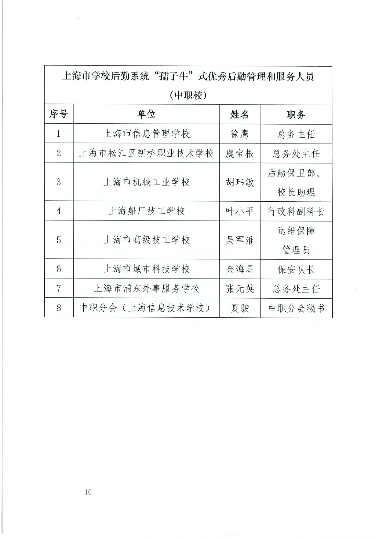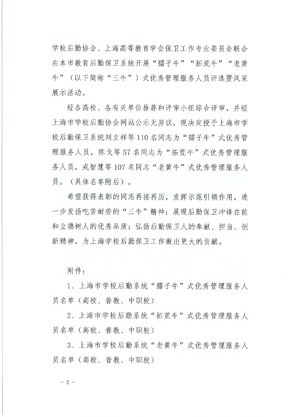 关于授予上海市学校后勤保卫系统“孺子牛”“拓荒牛”“老黄牛”式优秀管理服务人员称号的决定(终版)