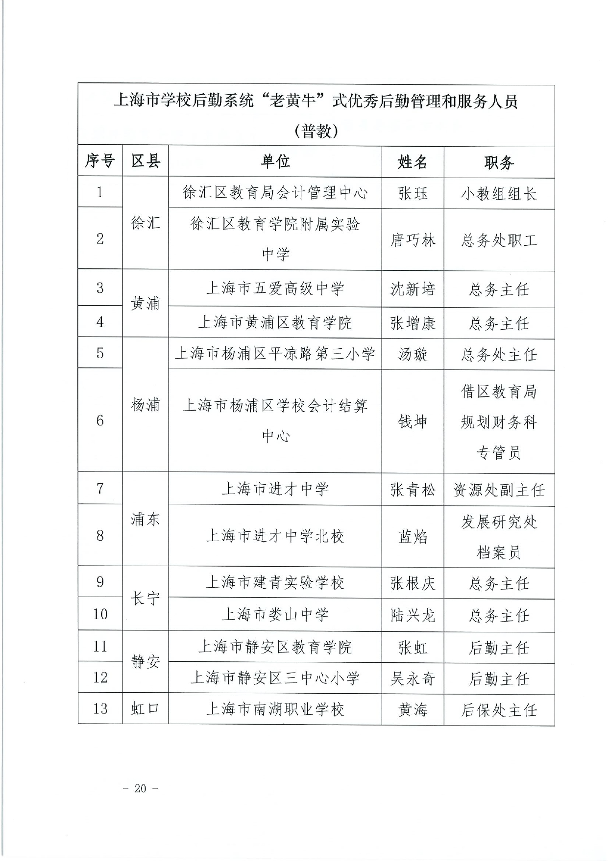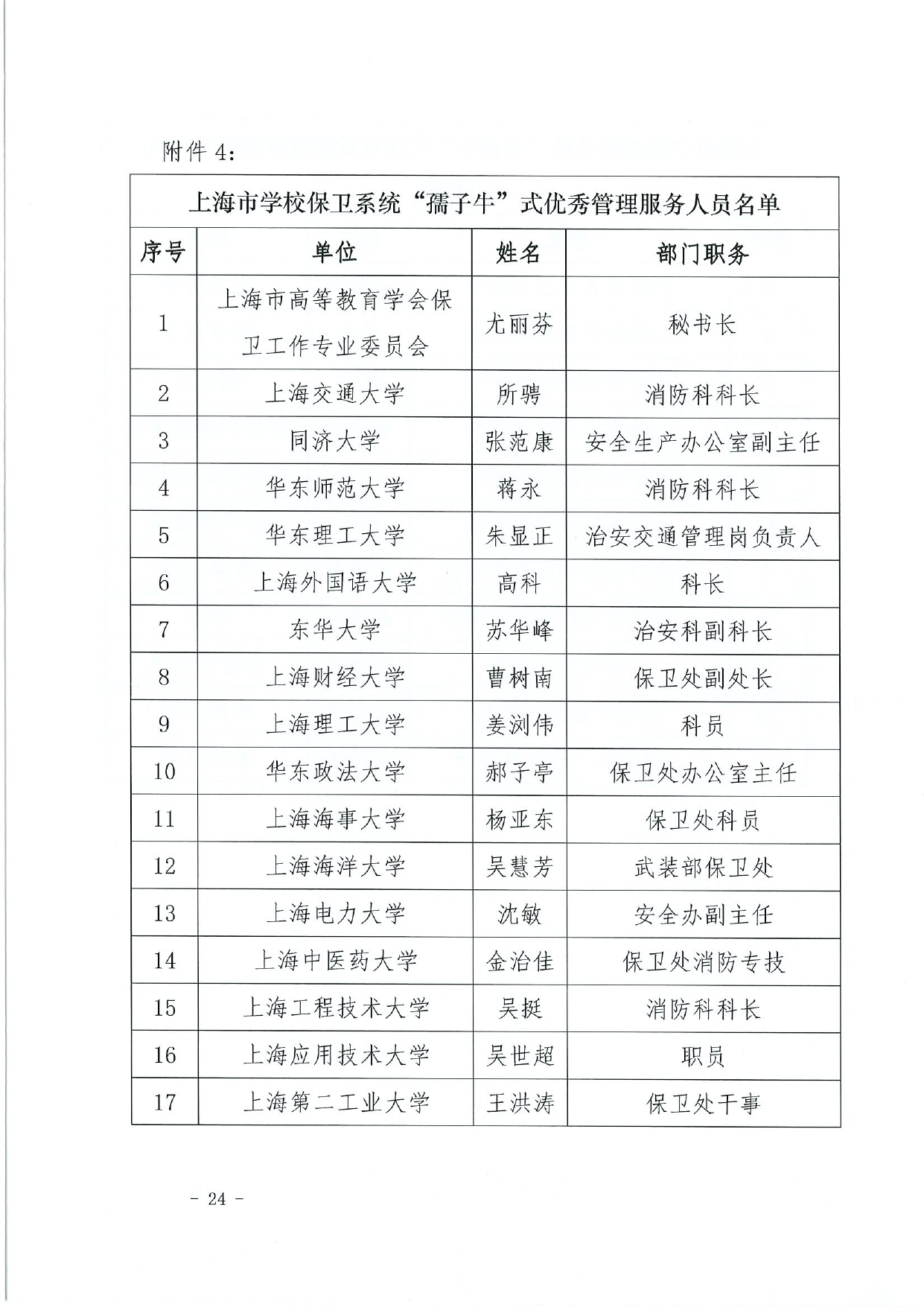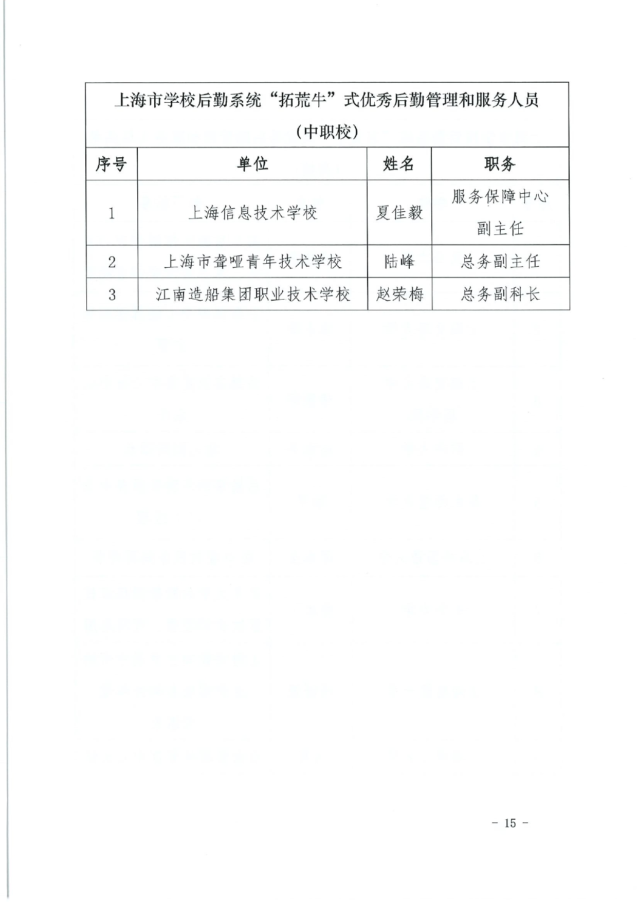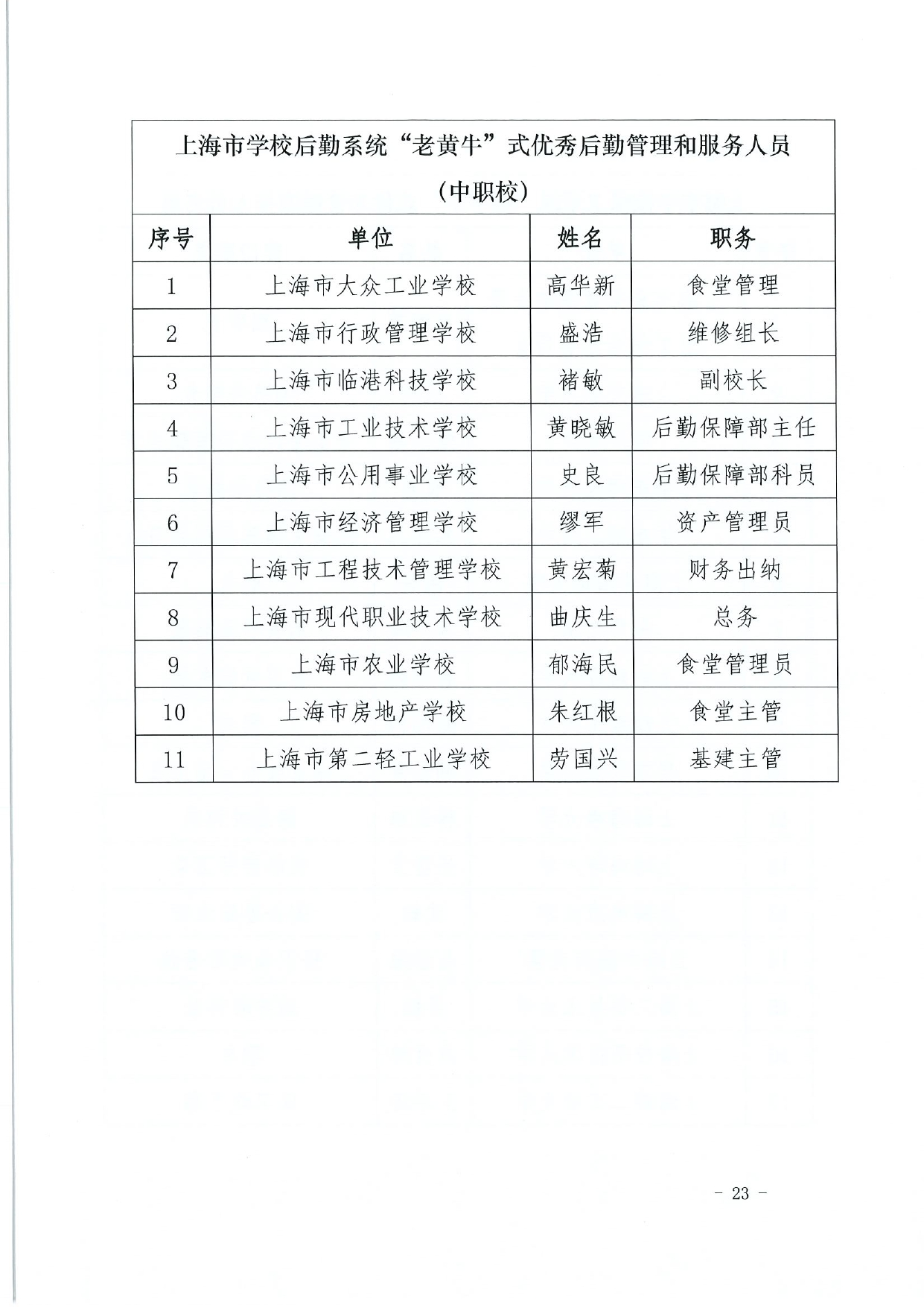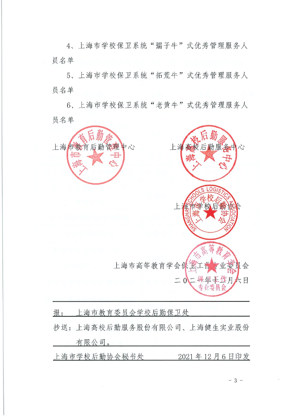 关于授予上海市学校后勤保卫系统“孺子牛”“拓荒牛”“老黄牛”式优秀管理服务人员称号的决定(终版)