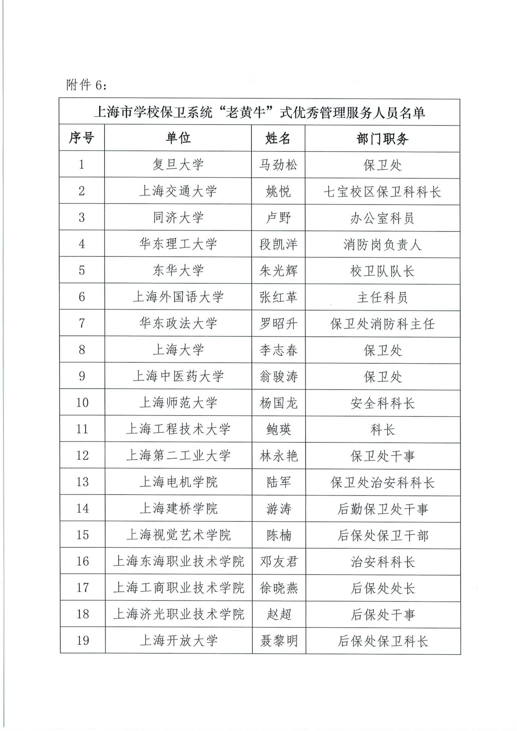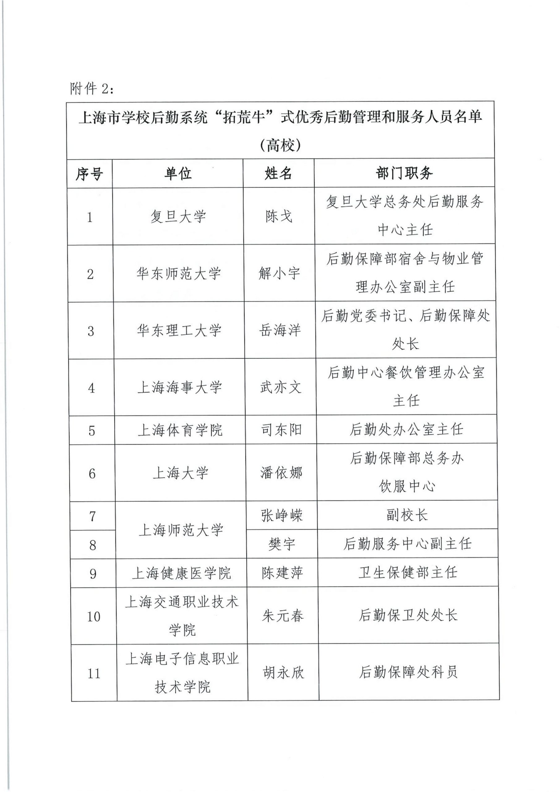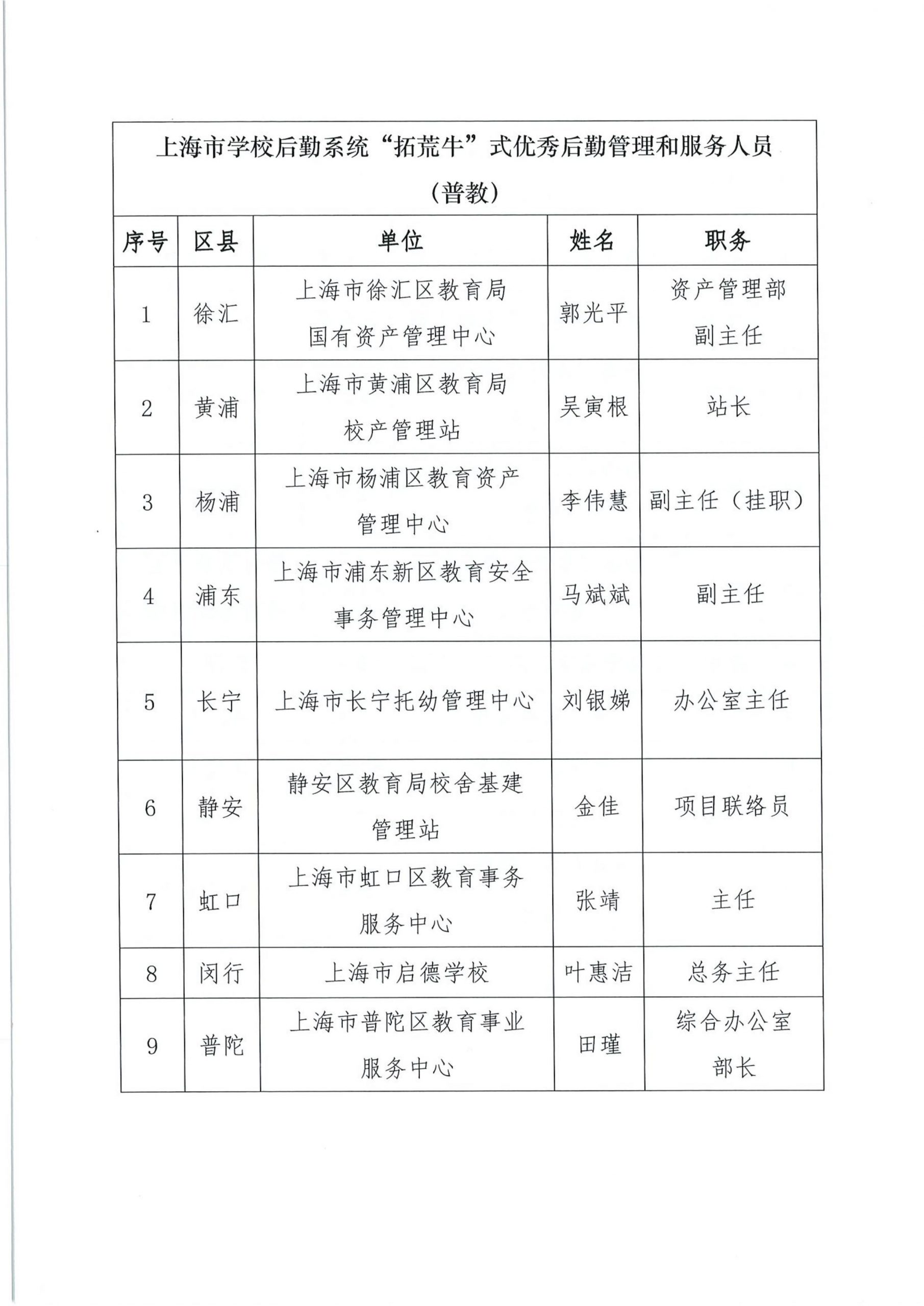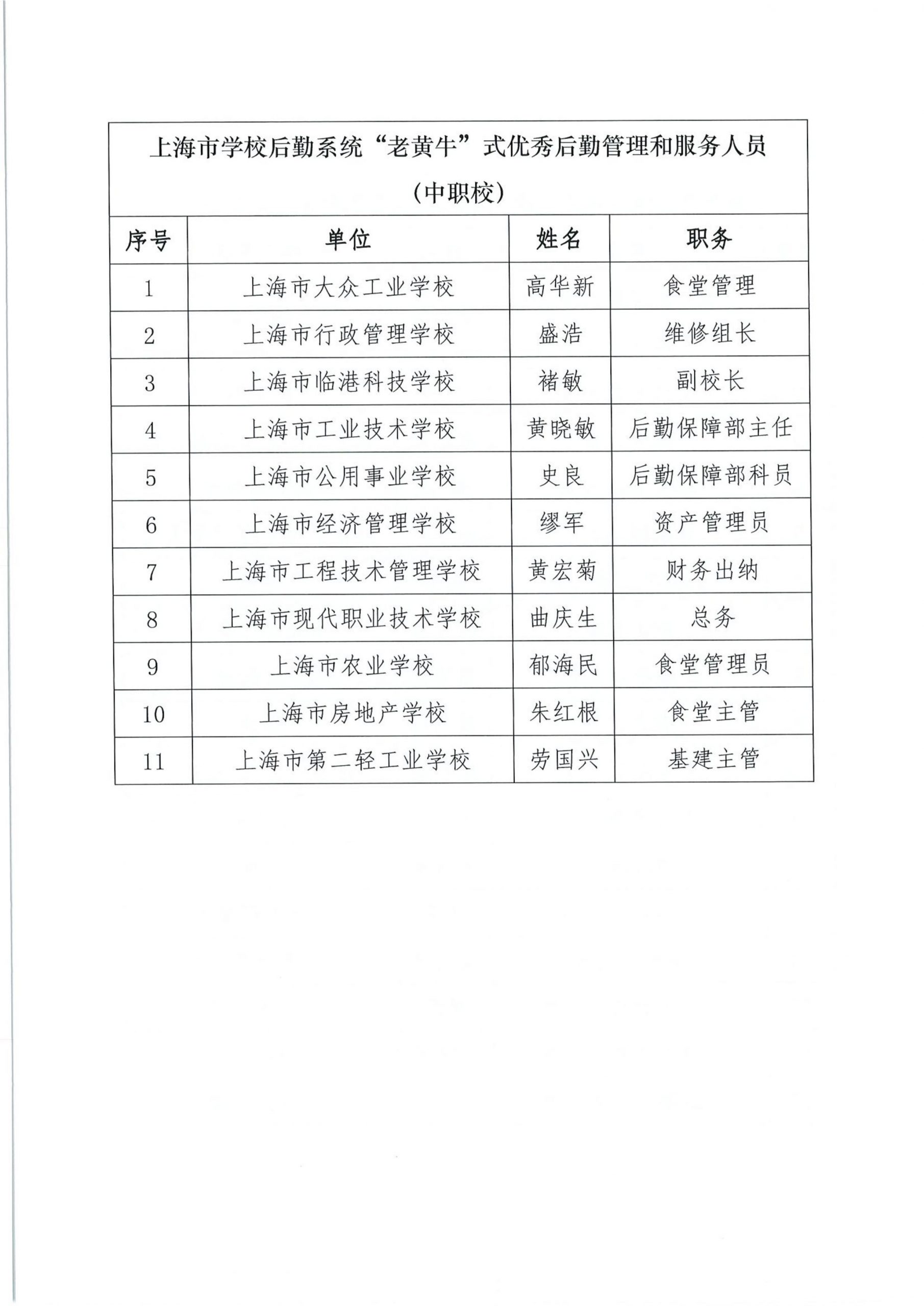 关于组织开展“上海市学校后勤保卫系统‘孺子牛’‘拓荒牛’‘老黄牛’式优秀管理服务人员”的公示