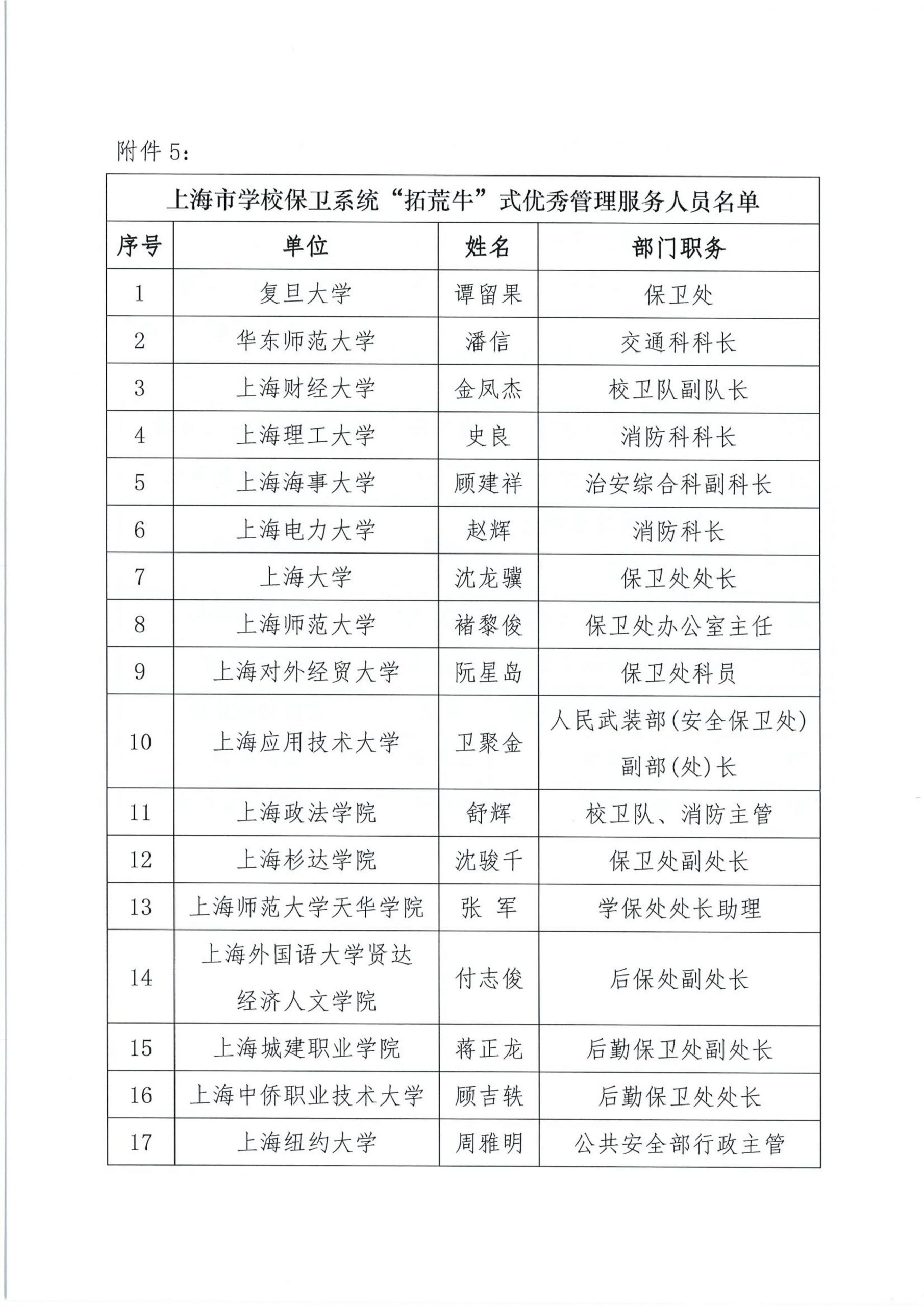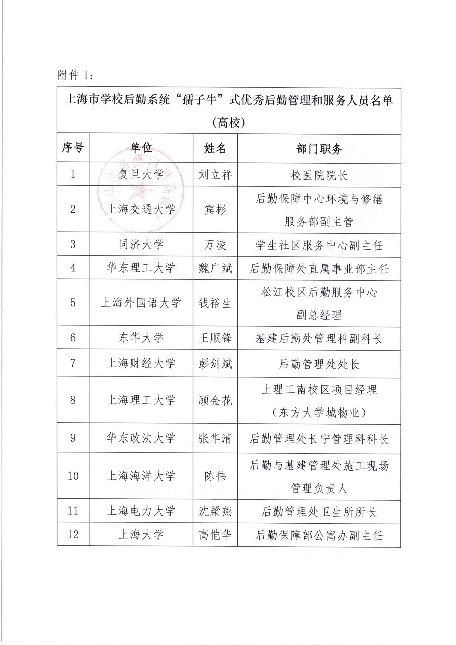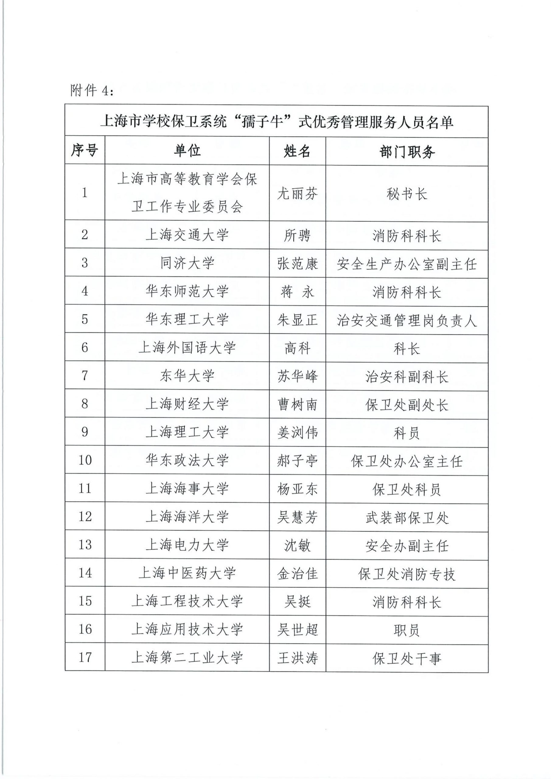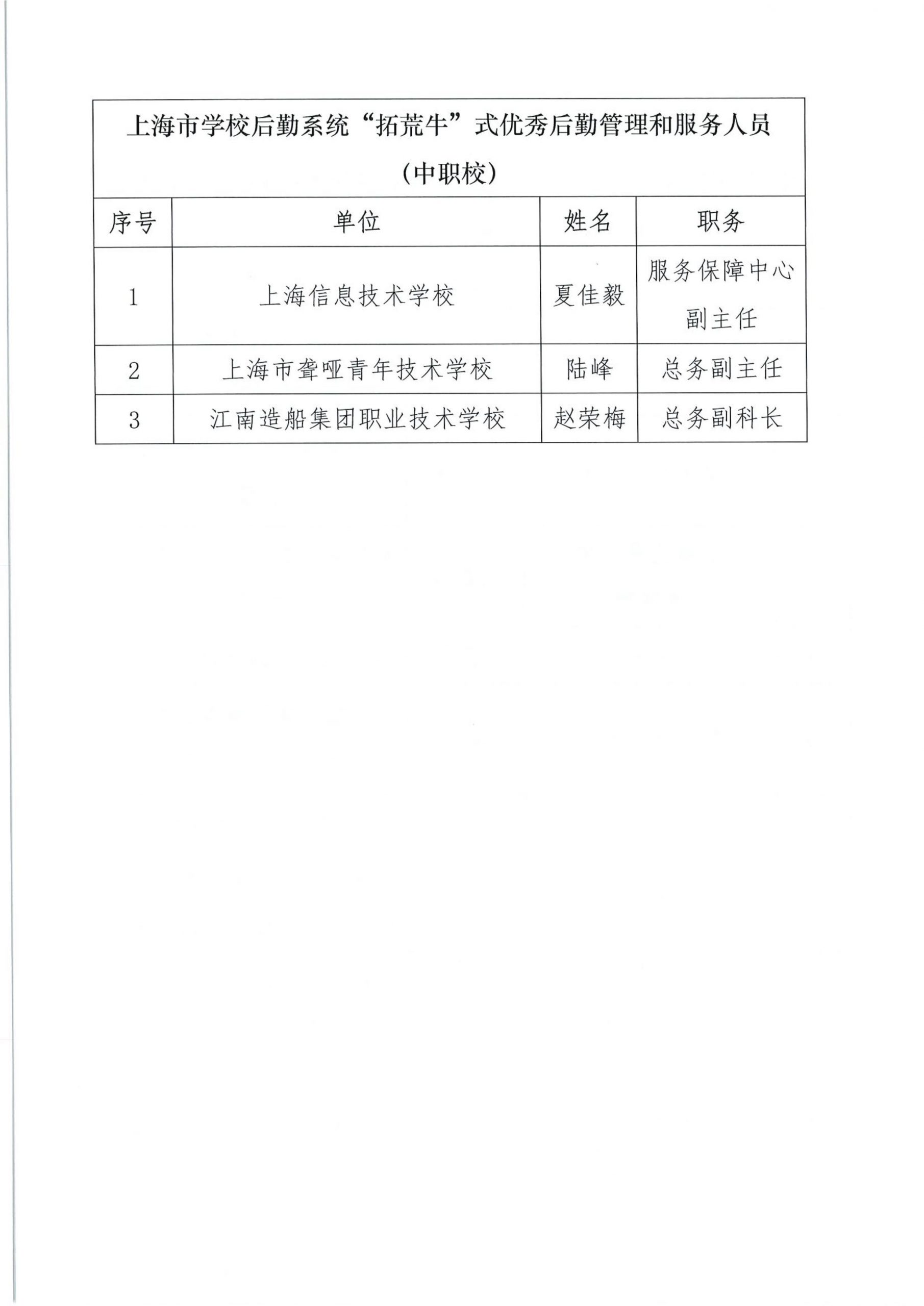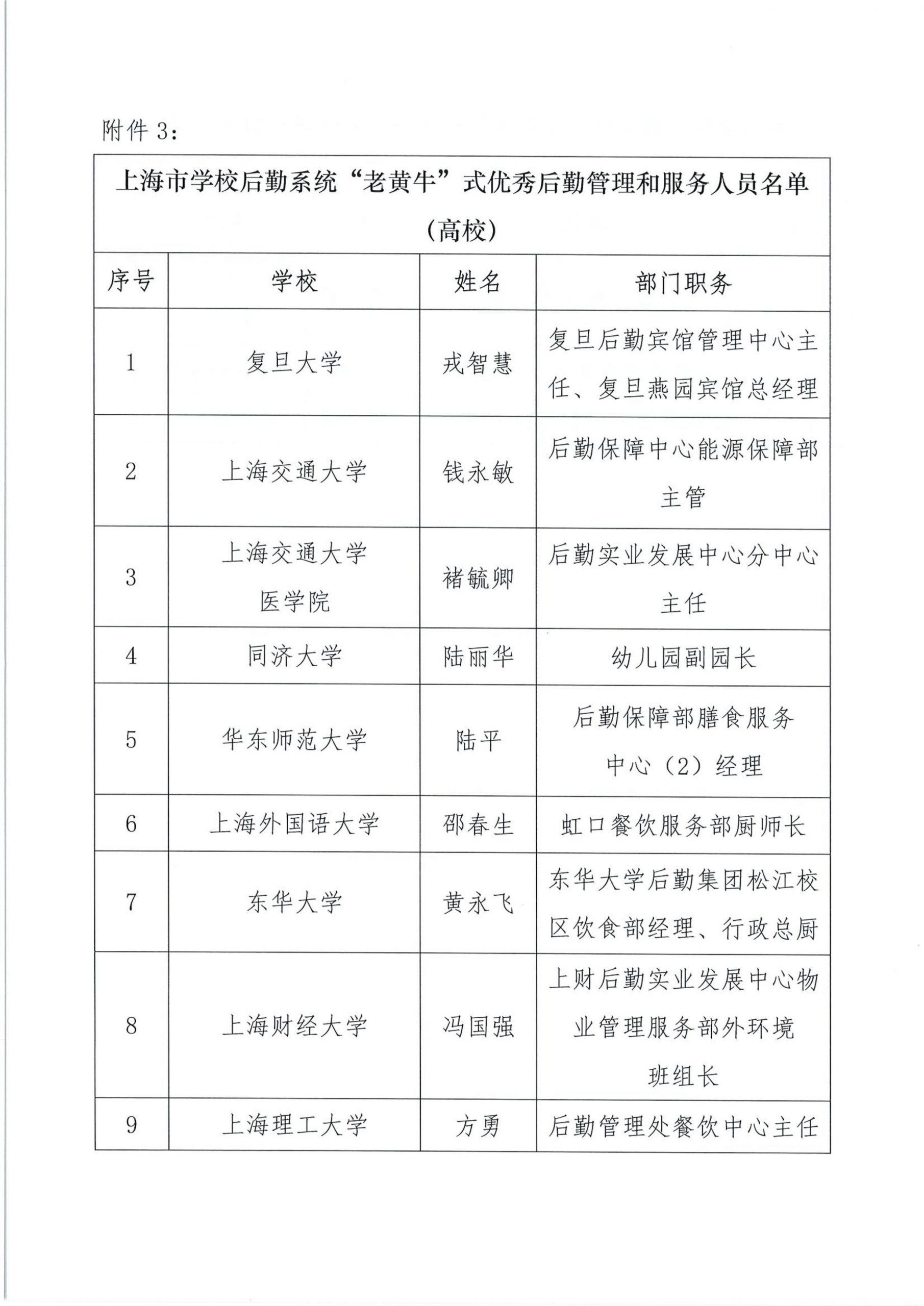 关于组织开展“上海市学校后勤保卫系统‘孺子牛’‘拓荒牛’‘老黄牛’式优秀管理服务人员”的公示