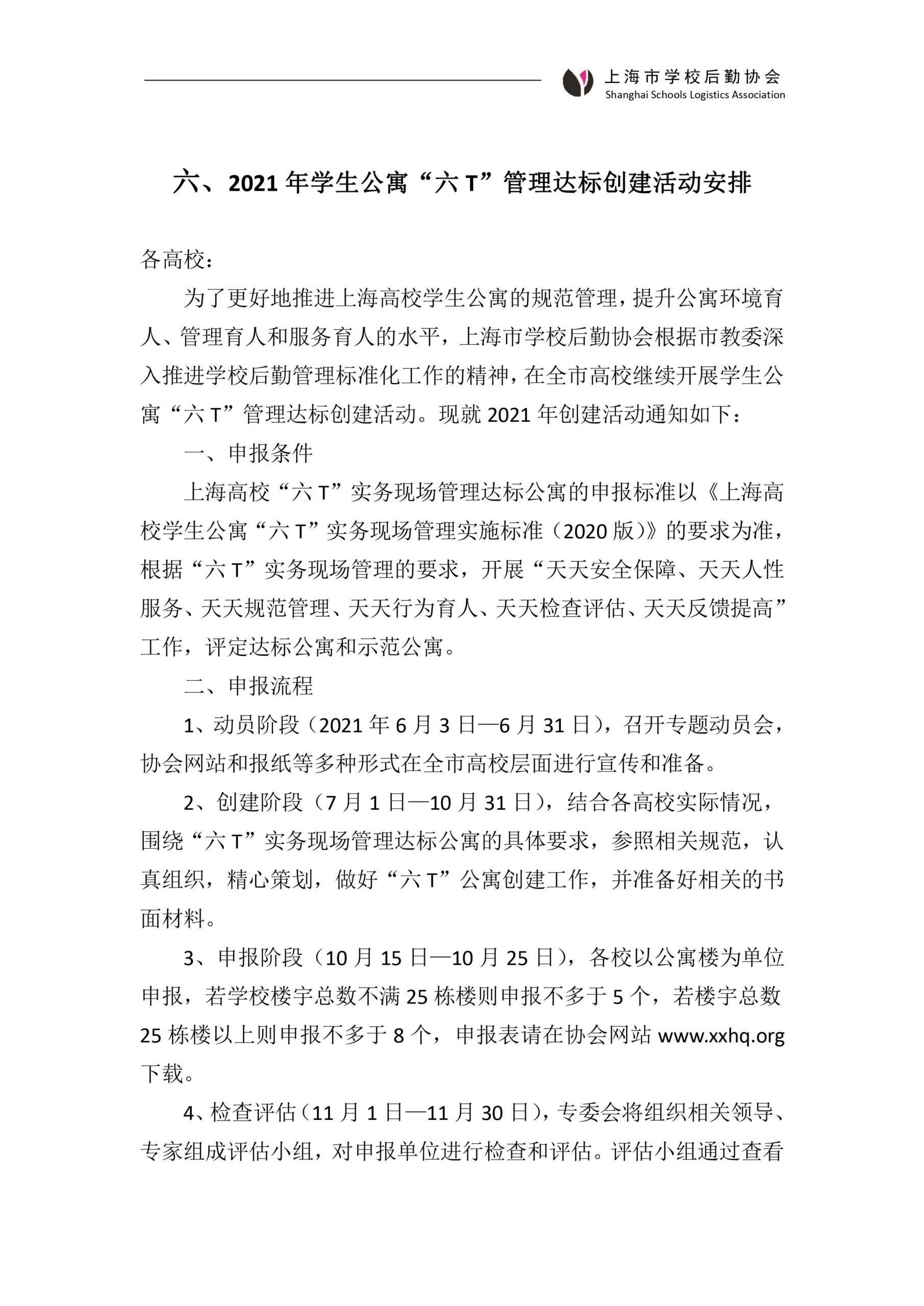 2021年学生公寓“六T”管理达标创建活动安排