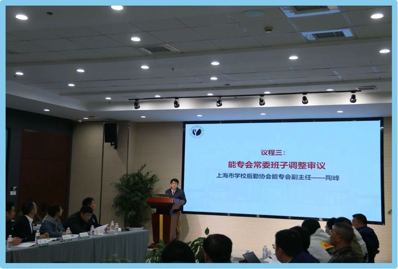 能专会副主任陶峰作常委班子人员调整与增补情况的审议说明,并提请会议审议获得一致通过。后续调整人员还需经所在学校和市学校后勤协会审批后完成增补程序。