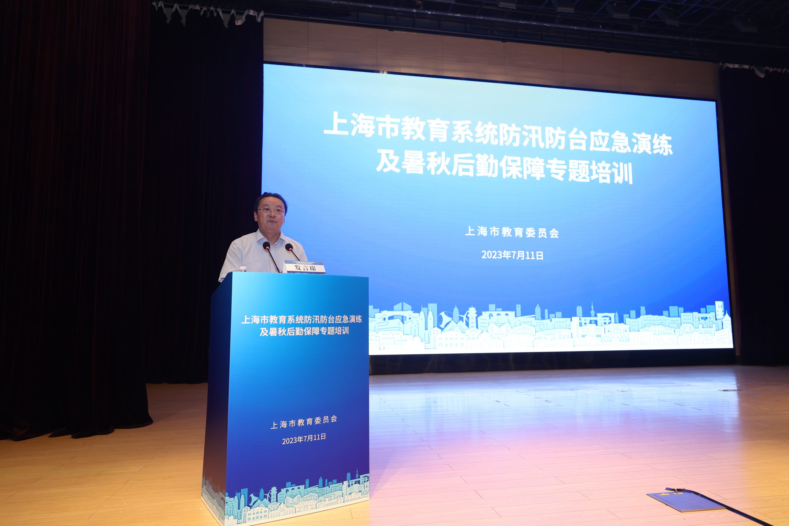 暑秋后勤保障专题培训环节,市防汛办督察专员、市应急局灾害应对处处长章震宇对2023年上海市防汛防台工形势和任务做现场授课;上海市市场监督管理局食品经营处处长黄丽瑢同志就学校食品安全工作进行授课;上海市燃气管理事务中心主任莫非同志就校园燃气安全使用工作进行授课;上海现代高校后勤研究院执行院长周宇华就防汛防台信息化系统信息填报工作进行介绍。