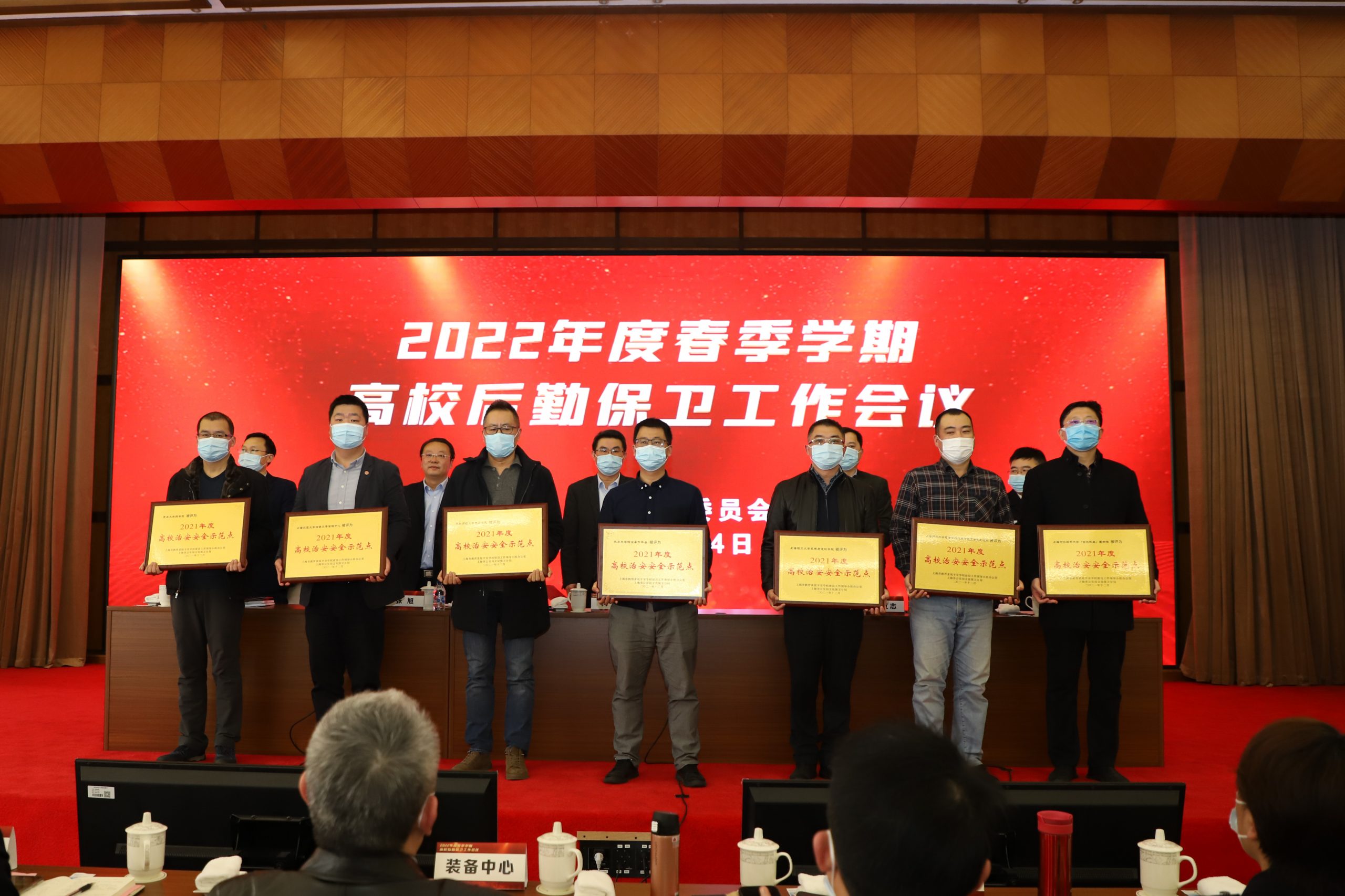 会上,对获得“2021年高校治安安全示范点”“2021年上海市垃圾分类百佳学校”“2021年上海高校六T实务现场管理示范食堂”等荣誉称号的学校代表进行了颁奖。