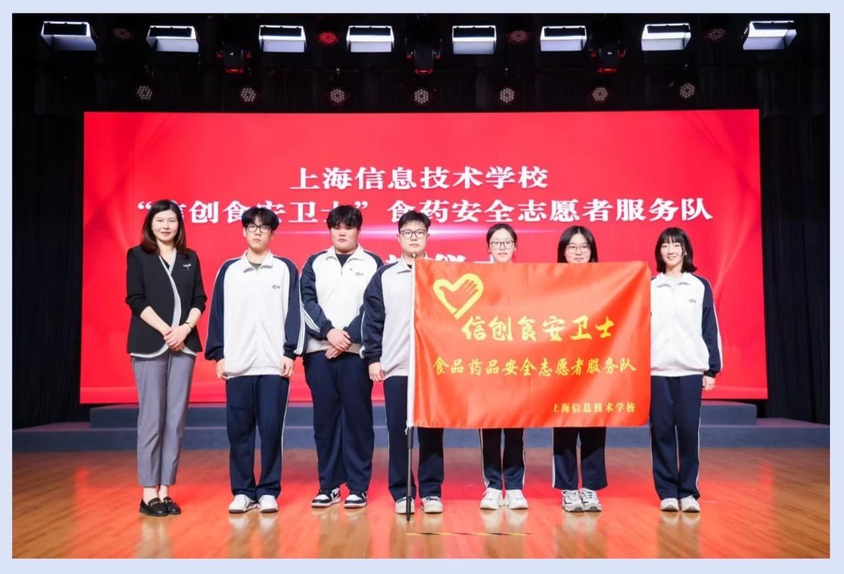 "信创食安卫士"食药安全志愿者服务队的成立,标志着普陀区食品药品安全志愿者队的进一步壮大,为食品安全社会共治体系再添新军。材料与检测系学生沈美琪作为志愿者服务队代表发言。